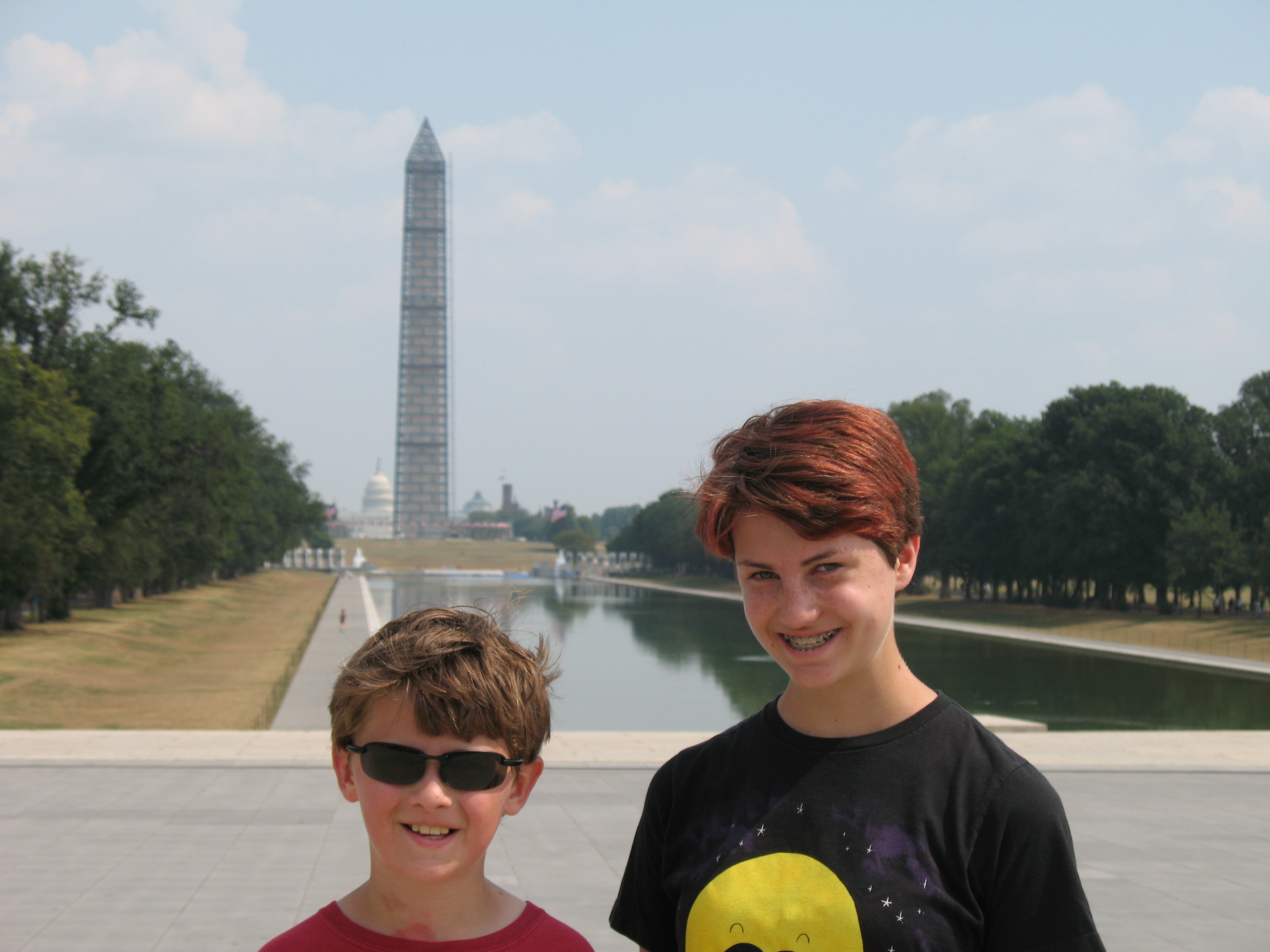 The kids and I got a late start today and suffered under extraordinary (maybe not so extraordinary anymore) heat and humidity as we walked from the train station to the Lincoln Memorial. The sweat poured off us. After lunch and a helpful cloud cover, we walked to the Vietnam Wall. The kind park ranger staffing the Memorial told us a bit about the layout of the wall and the number of soldiers who died (as well as eight female nurses). As he told me this, nearby there were two elderly men who were wearing WWII-vet caps and sitting in wheelchairs and an elderly woman making a stone rubbing. It’s impossible not to get choked up trying to take it all in. I thought of my friend Ruth whose son Andy, a Vietnam veteran, died of cancer which was probably caused by Agent Orange and whose name is not on the Wall. I also thought of an NPR interview I heard a few months ago with the father of a soldier who served in Afghanistan and who killed himself shortly after returning home. The young man had severe PTSD but did not receive treatment from the military. The father cried when thinking of a memorial near their home for fallen soldiers. “My son’s name should be on there,” he sobbed.