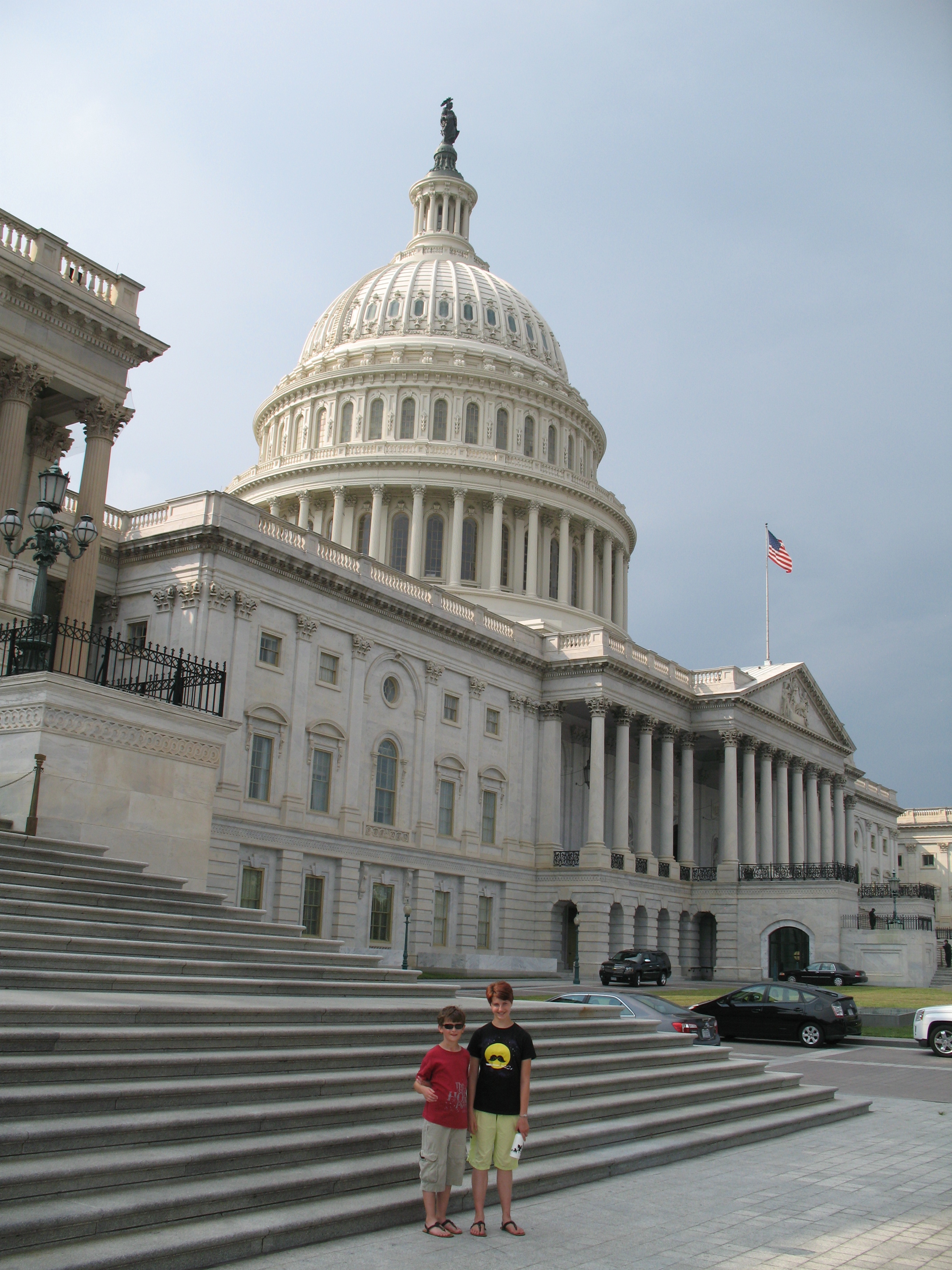 We walked to the White House and then the Capitol. We didn’t have tour reservations at either place so we were only allowed to look at them from the outside which doesn’t seem appropriate for a republic. Walking back to the Metro station from the Capitol, there was a thunderstorm, and we arrived drenched and dripping at the station. For reasons we have yet to understand, we were the only wet ones on the subway.
