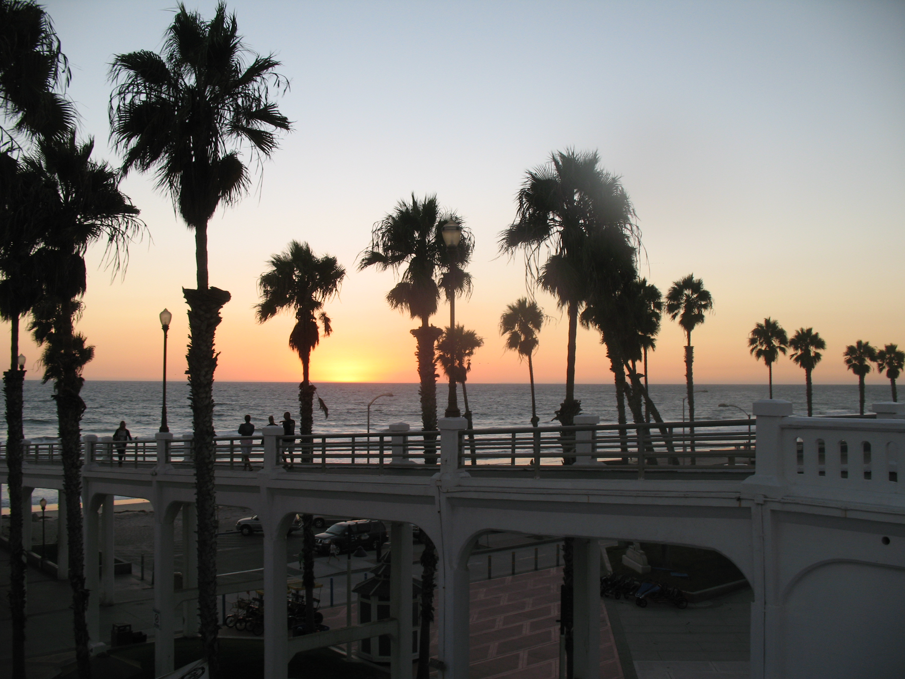 After a whirlwind couple o’ days in Colorado Springs where we caught up on mail and appointments, we flew to San Diego Monday night and took the train to Oceanside Tuesday. We’re staying in a lovely condo that’s less than a block from the Pacific Ocean. HOWEVER, the train tracks are as close as the ocean (but on the other side of the condo); and there are passenger trains with really loud whistles that pass frequently throughout the day and start again about 4 am. Of course, the train station is over a mile from here, and we had to walk that way with all our belongings Tuesday and will do the reverse next month. The on-site laundromat is free though, and we’ve been sleeping well; so overall it’s good.