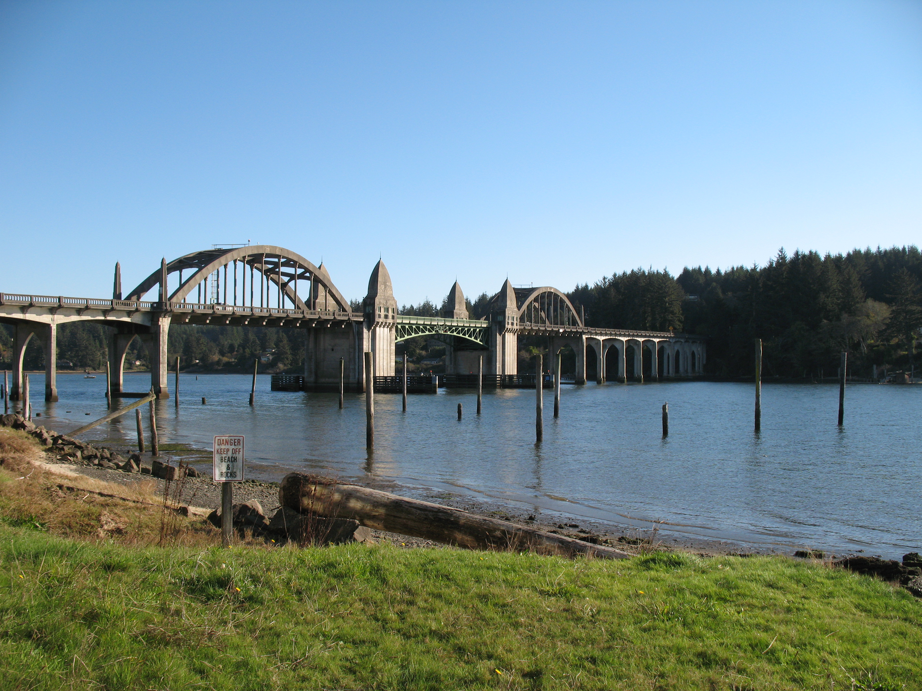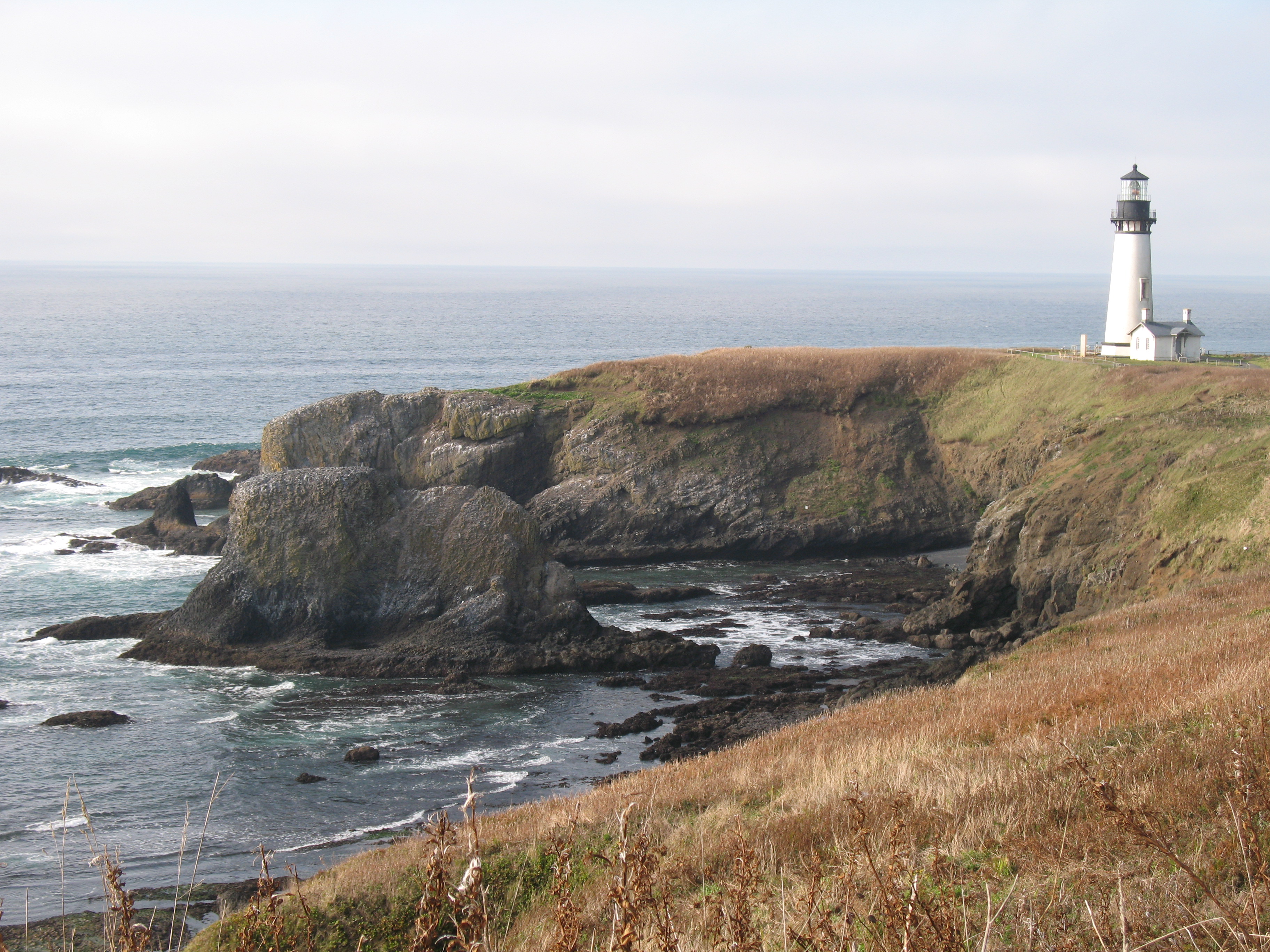 We really enjoyed our time on the central Oregon coast. We saw lighthouses, seals, sea lions, sand dunes, Art Deco-looking bridges built by the CCC, a giant Sitka Spruce, a primordial-looking forest, a newt, pelicans, herons, whale baleen and jaw bones in a couple visitor centers, beautiful beaches, and otters (We think…they were swimming). We toured the Heceta Head Lighthouse with Steve, a volunteer park ranger, who told us that despite the light bulb being only 1,000 watts, the light can be seen for 21 miles because of the powerful, 4-ton, revolving lens that reflects the light. Each of Oregon’s nine lighthouses sends off a unique signal, letting sailors know where they are along the coast. Steve also asked us a little lighthouse trivia: Which state has the most lighthouses? Michigan!