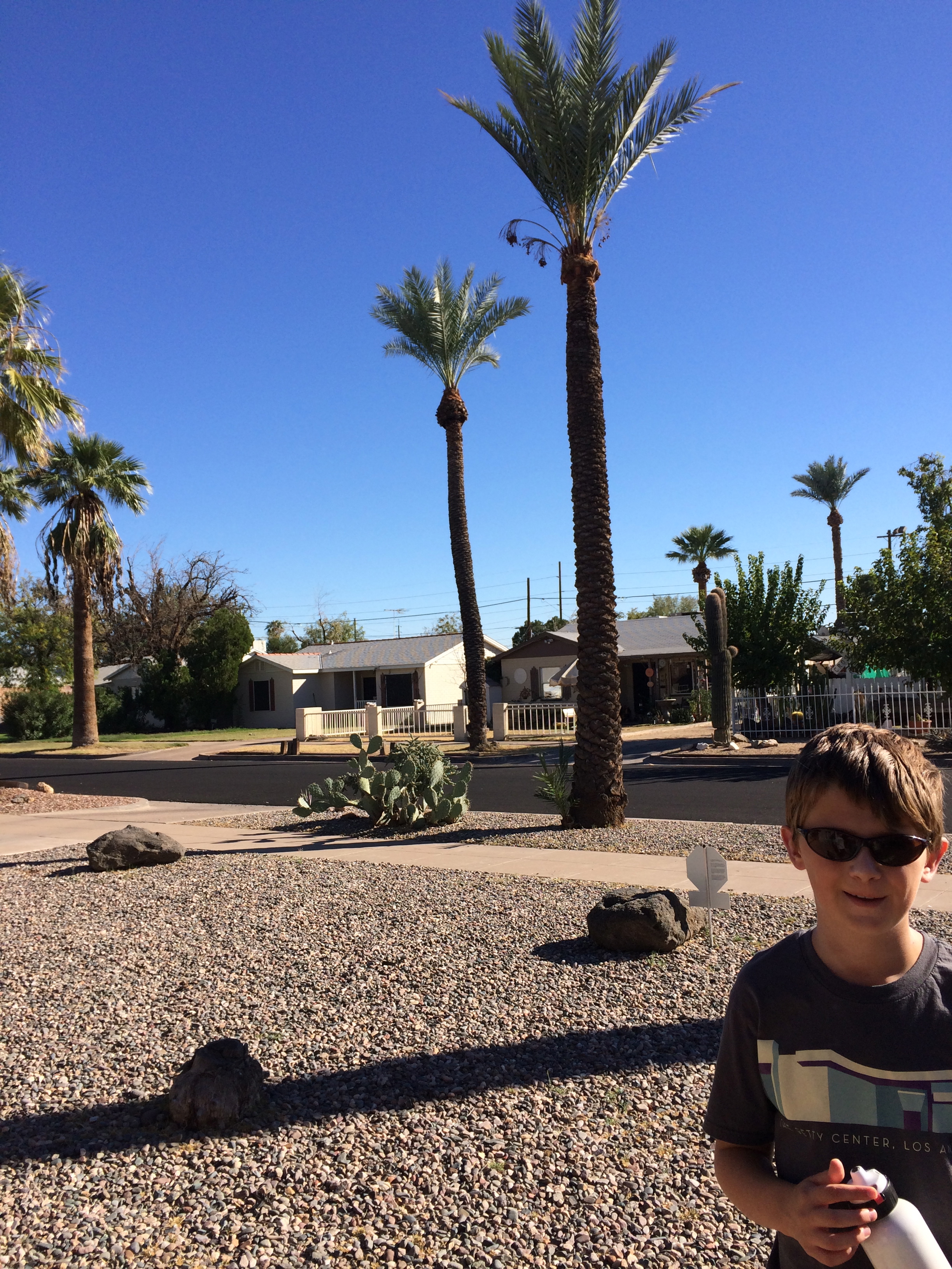 I’m so glad we’re here in November and not in the summer. The 6% humidity is already causing our lips to bleed and skin to be dry and itchy. If we had to couple that with 120-degree temps, I imagine that would be rather unpleasant. There’s not a lot of plant life that grows in such an environment. A number of Colorado municipalities promote xeriscaping – landscaping appropriate for arid regions. And, they say, just because a yard full of rocks would not need watering, does not mean that would be a good landscaping choice. Rocks don’t absorb heat; they just bounce it back into the air making the air hotter and increasing the electric bill to run the A/C. It seems Phoenicians didn’t get the memo. Rocks are definitely the go-to landscaping choice in our neighborhood and for miles around. It looks like hellscaping. There doesn’t seem to be any point to having a yard. Kids aren’t going to play on rocks. No one grows anything edible as far as I can tell. It’s not attractive. It’s just miles and miles of wasted land.
