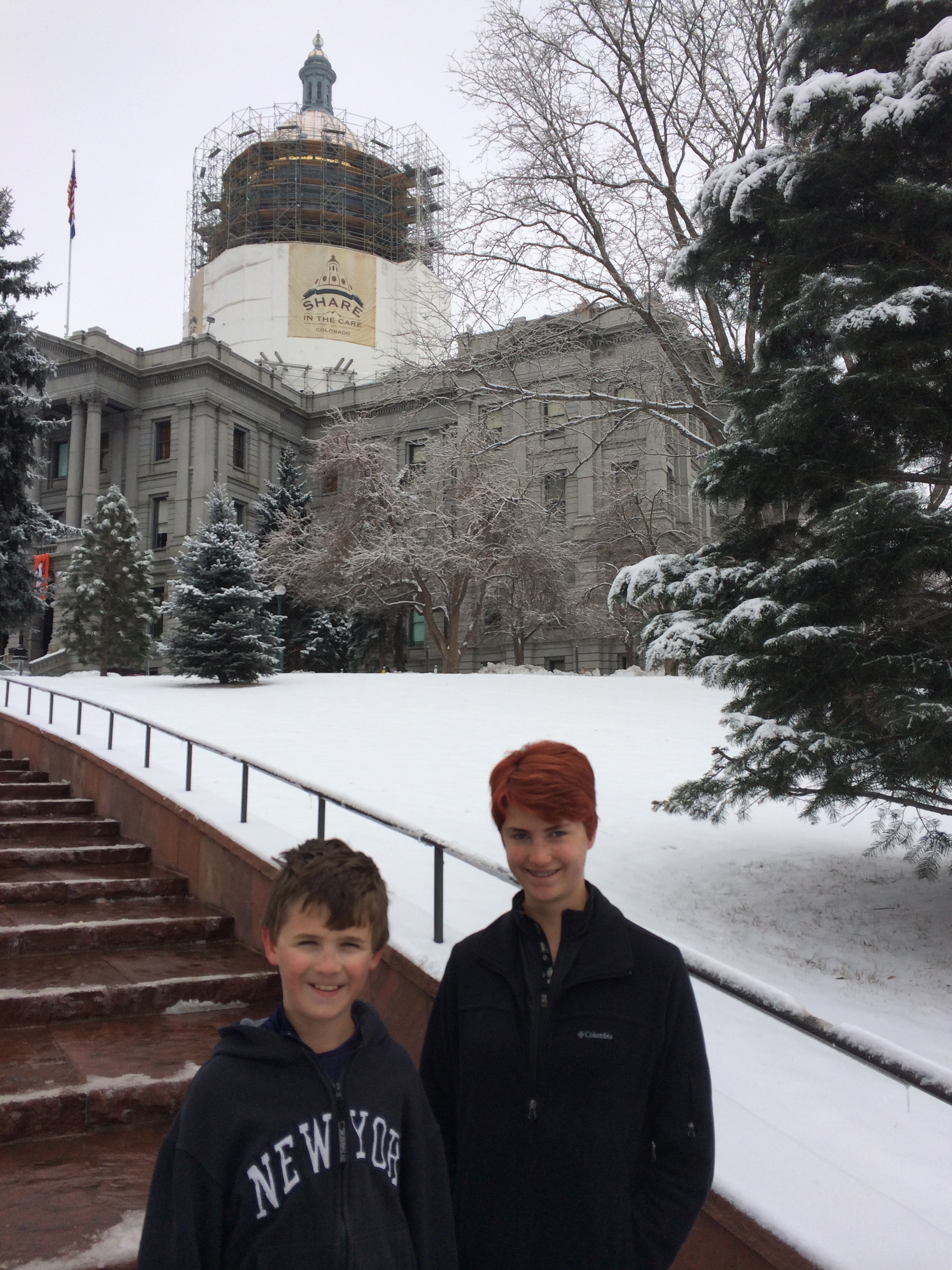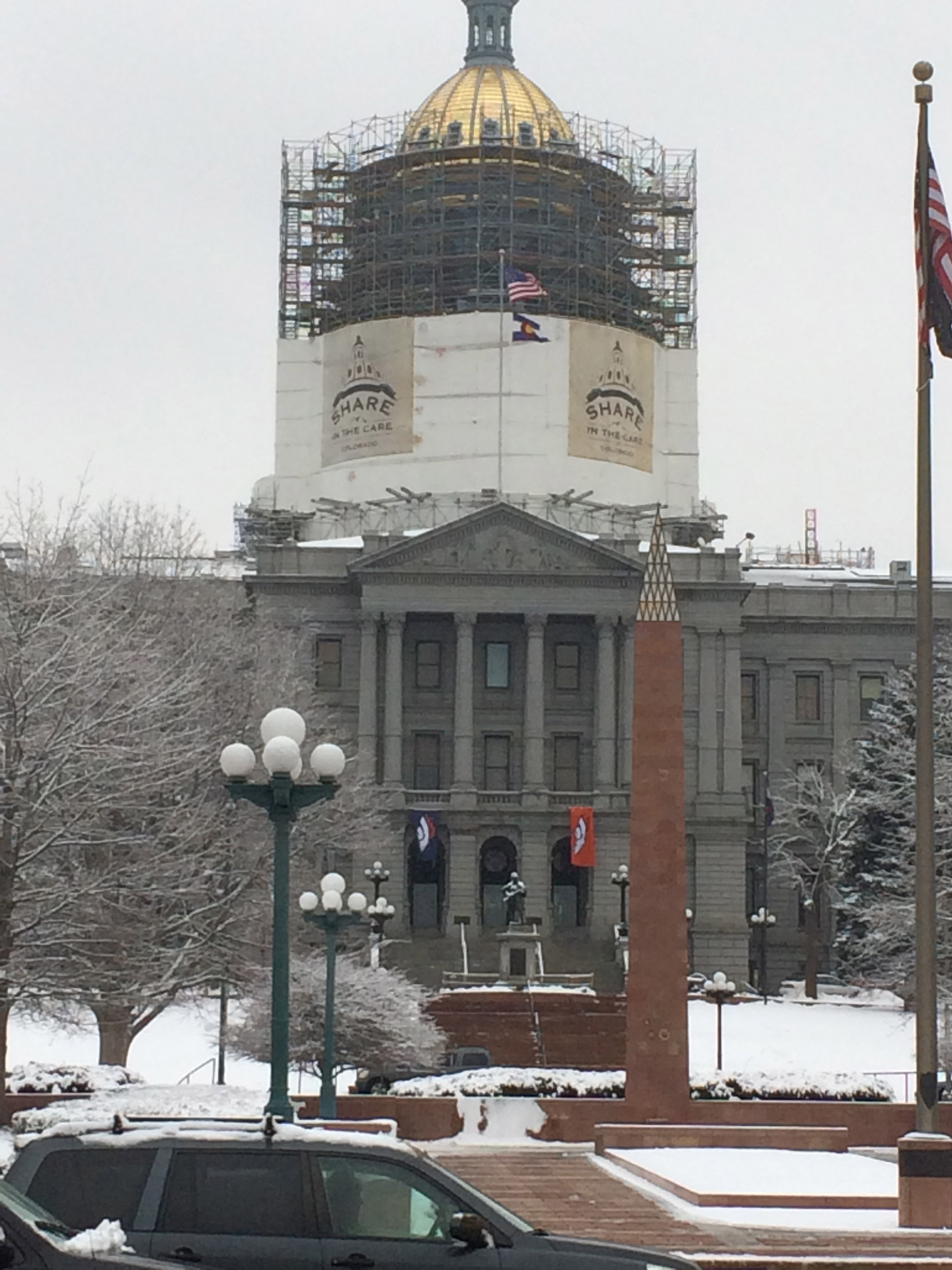 We’re experiencing our first snow in about a year. We flew to Denver Thursday, and it snowed that evening. Friday morning we wore several layers and walked the 1.3 miles from our Capitol Hill apartment to the state capitol only to find the state legislators had called a snow day. We had been looking forward to sitting in the balcony and listening to the discussions – particularly a bill on the House’s January 31 agenda relating to healthcare for children with developmental and intellectual disabilities. But it was not to be. We’ll definitely try another day since we also don’t want to miss the discussion of HB14-1024 which would designate the claret cup cactus as the state cactus!