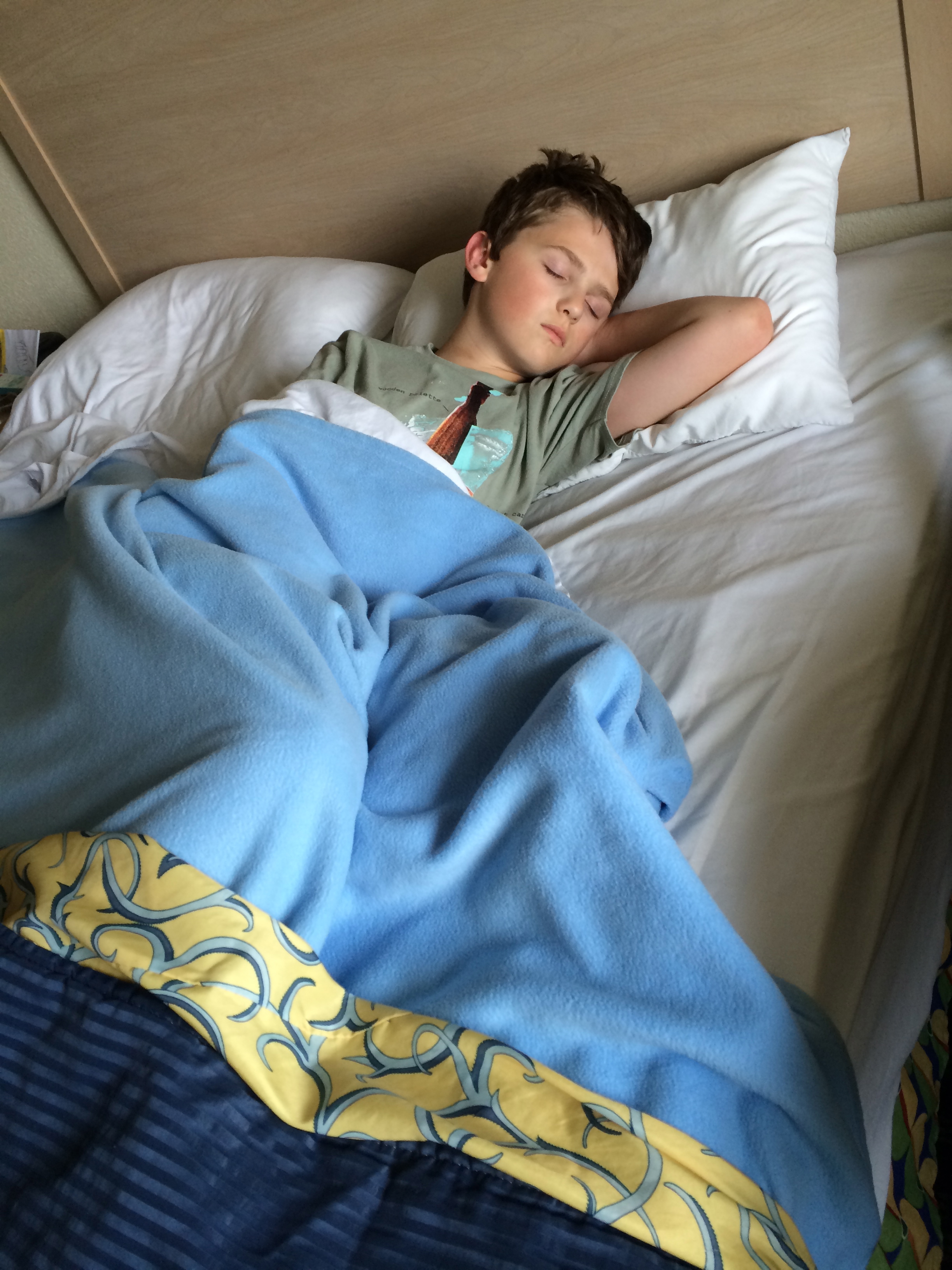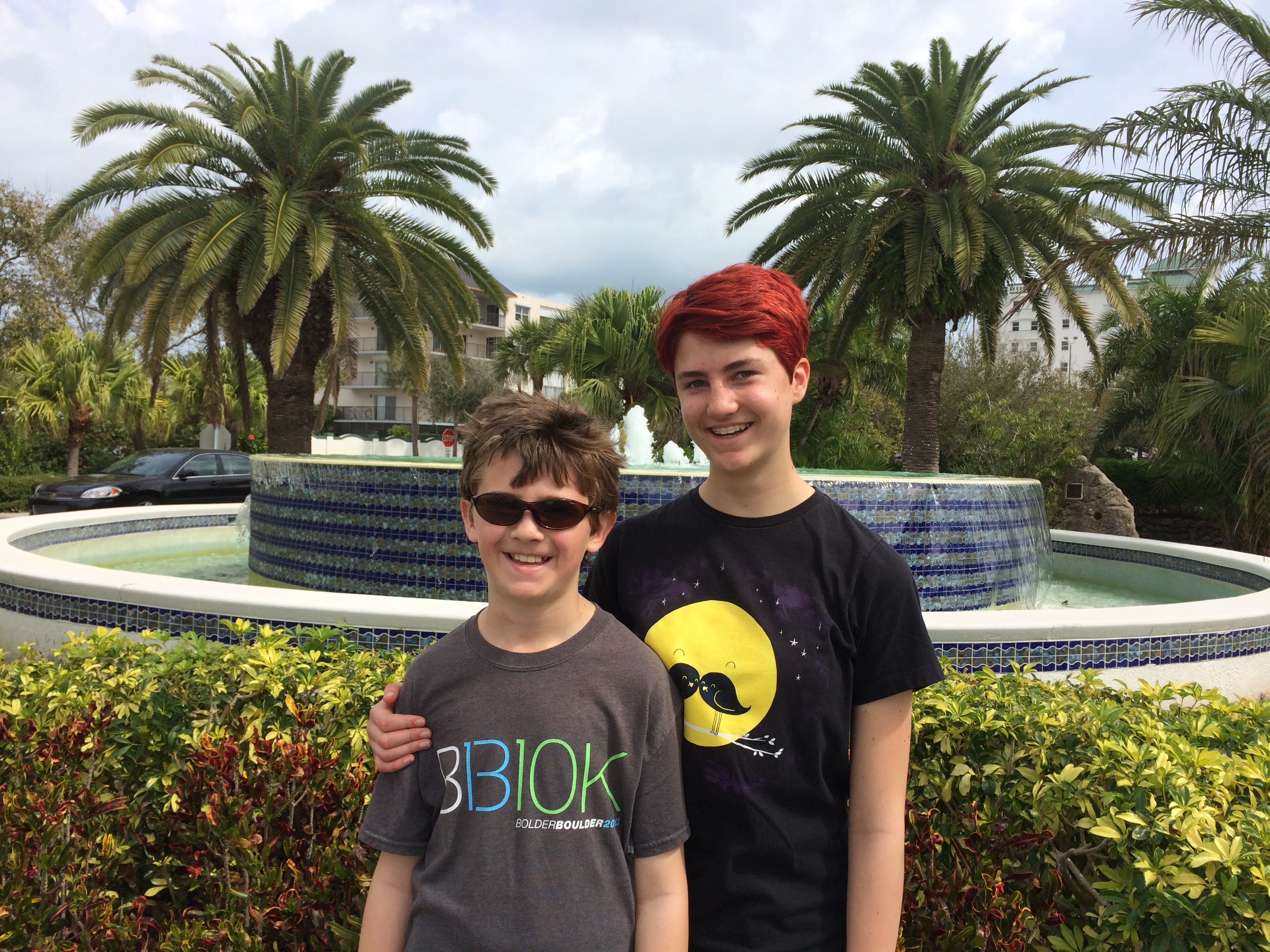 After a three-hour nap this afternoon, the kids and I walked along the shore – stepping carefully to avoid the numerous shell fragments. We watched a Disney Cruise depart and then returned to our motel for a dinner of peanut butter and crackers. We had flown from Denver to Orlando on Thursday, taking a taxi to Cocoa Beach, and will return this coming Thursday. We are visiting Wayne’s parents and sisters whom we haven’t seen in a few years. Today Anne, Leo, and Mary met us at a restaurant on the pier by our motel where we ate tasty, locally-caught seafood and watched the surfers out the window. Tomorrow we’ll visit a nature preserve.