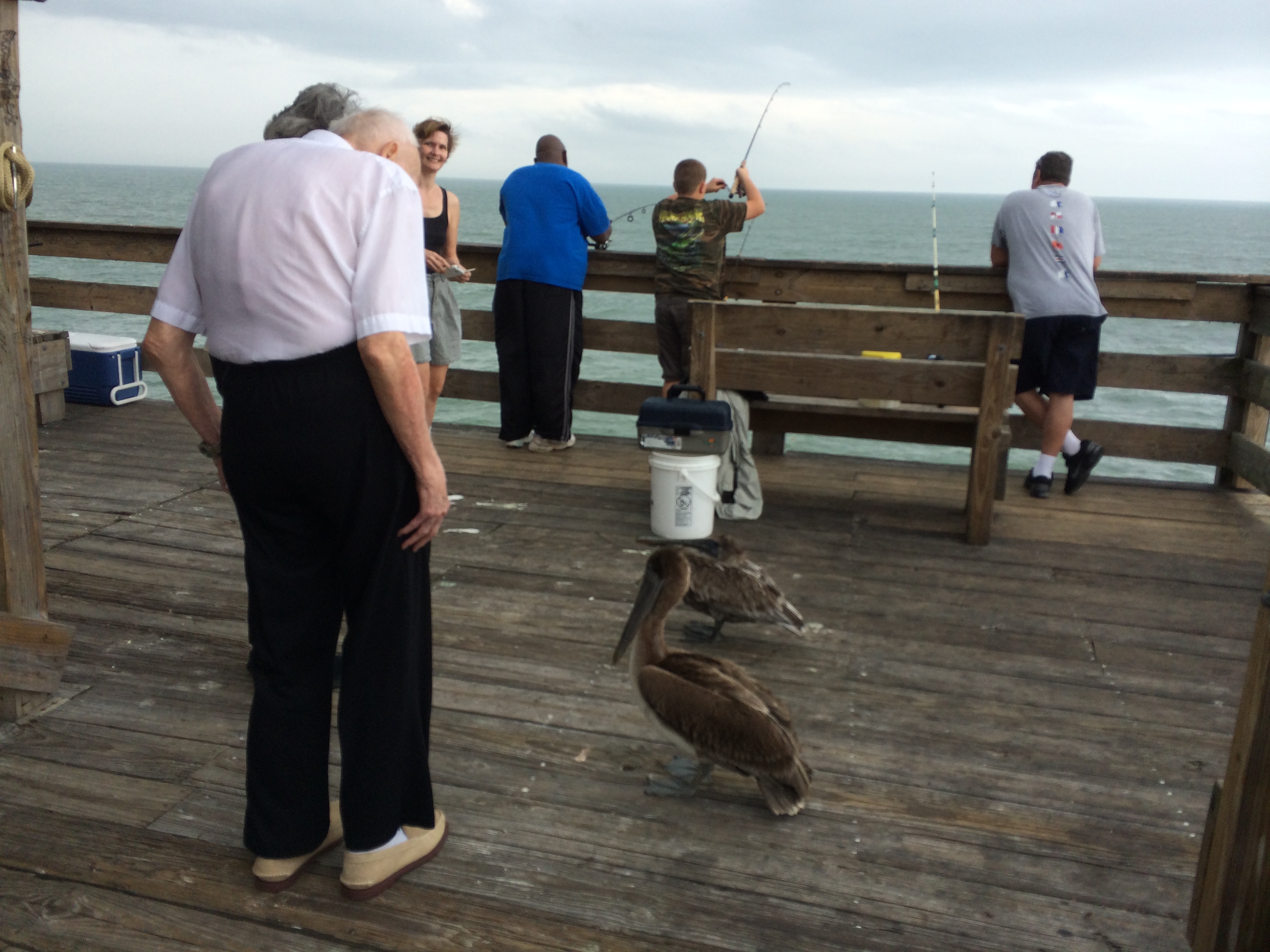 Laurel thought these dirtier-looking pelicans a littler further down the pier looked like chimney sweeps. She sang, “Step in time! Step in time! Never need a reason, never need a rhyme!” (We recently watched Mary Poppins.)