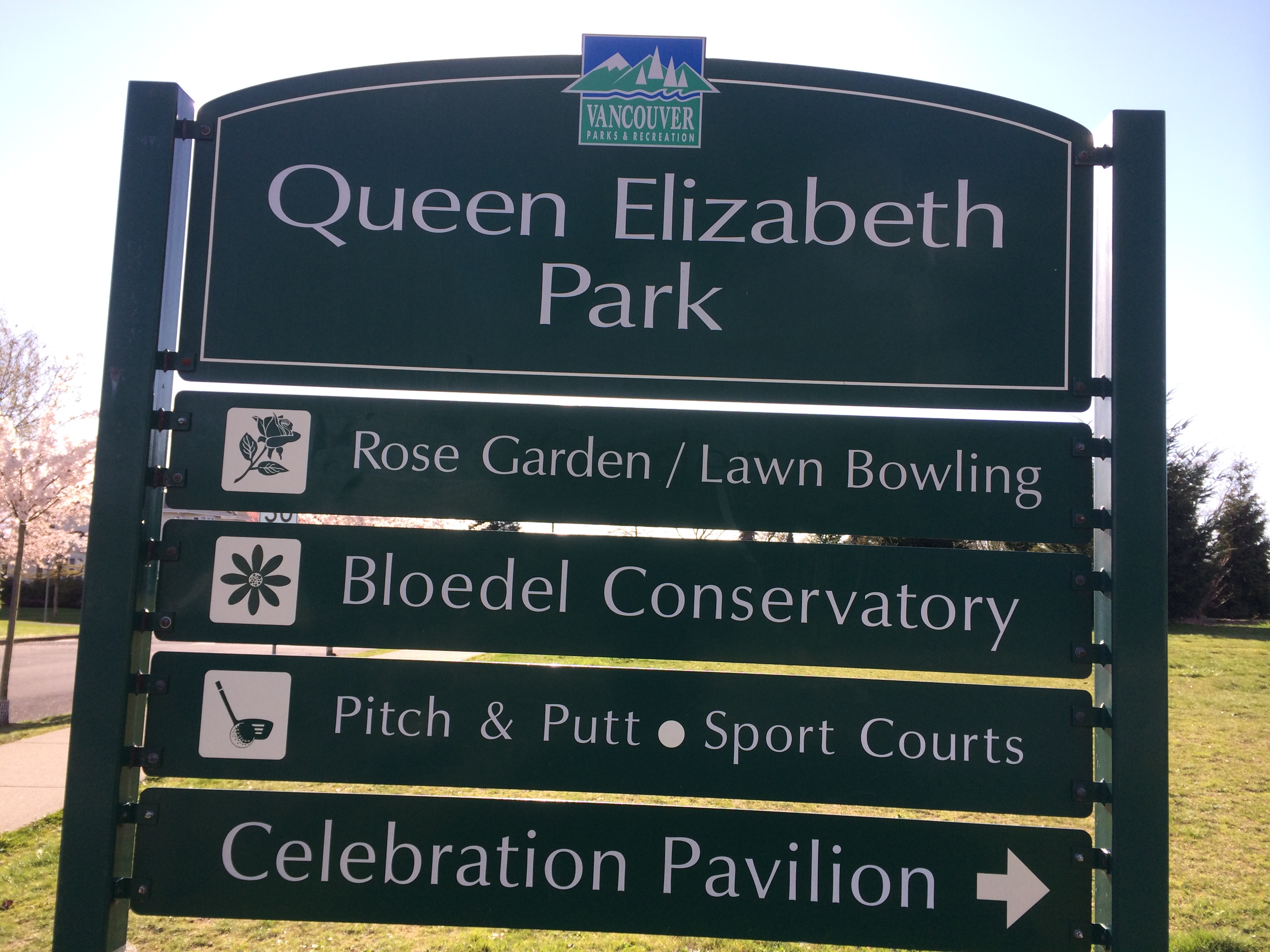 Late yesterday afternoon we walked to Queen Elizabeth Park – an enormous, gorgeous place with flowering trees, forests, a conservatory, tennis and basketball courts, a dog park, fountains, and amazing views. We came upon a large restaurant, Seasons, at the top of a hill and decided to eat dinner there. What a treat!
