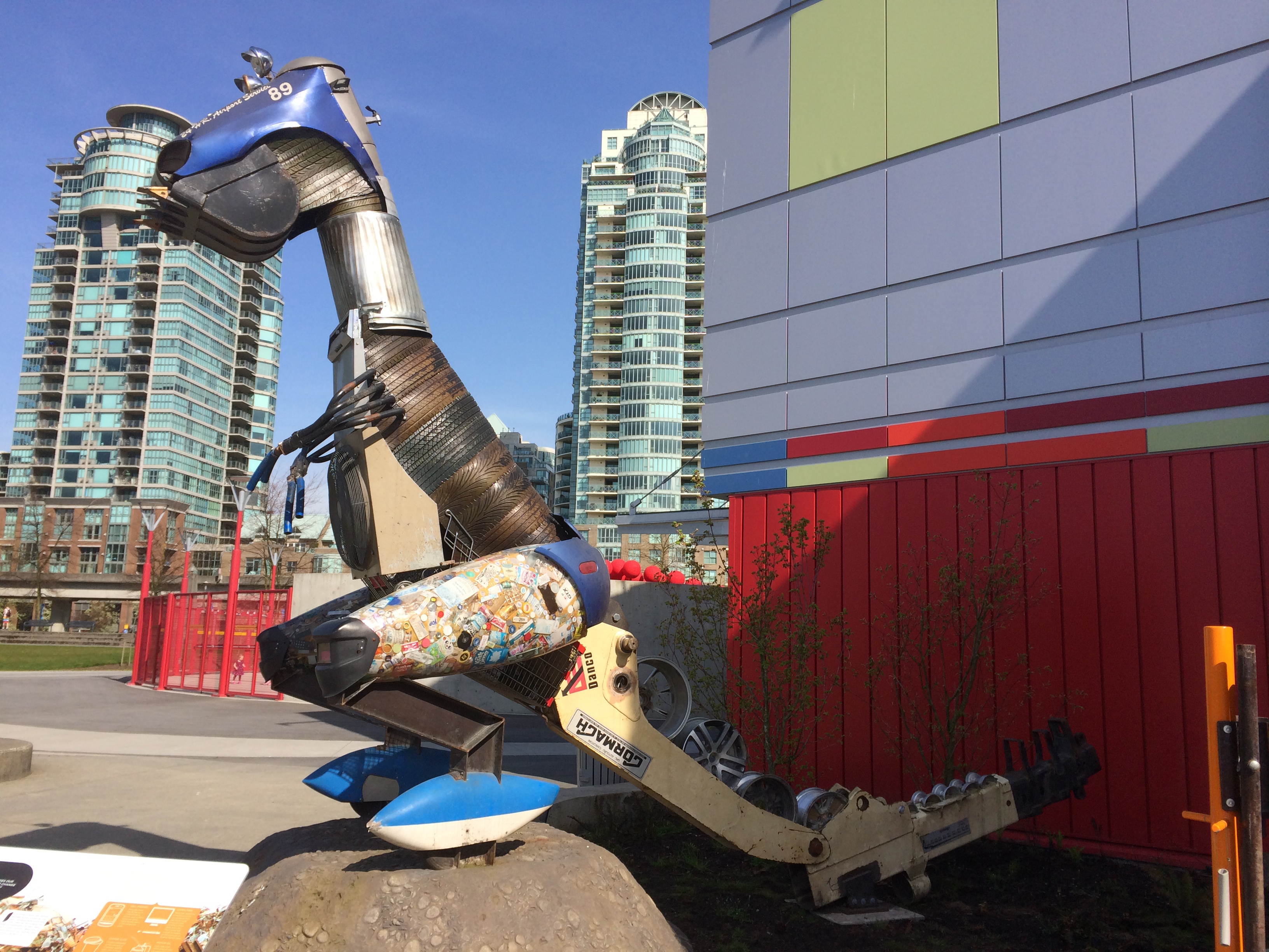 Yesterday Laurel stayed home since she has a cold (again!) while Charlie and I took the train east to Burnaby, a large suburb whose tremendous skyline can be easily seen from the Vancouver Lookout. Kaitlyn, who was working at the Lookout that day, told us that some people think that’s the Seattle skyline (but Seattle is much too far away to be seen from Vancouver). She talked about how big the mall is in Burnaby, so Charlie and I went to Metropolis at Metrotown (its actual name). It was underwhelming considering what we could see from the tower. But when we returned, we walked around Vancouver a bit.