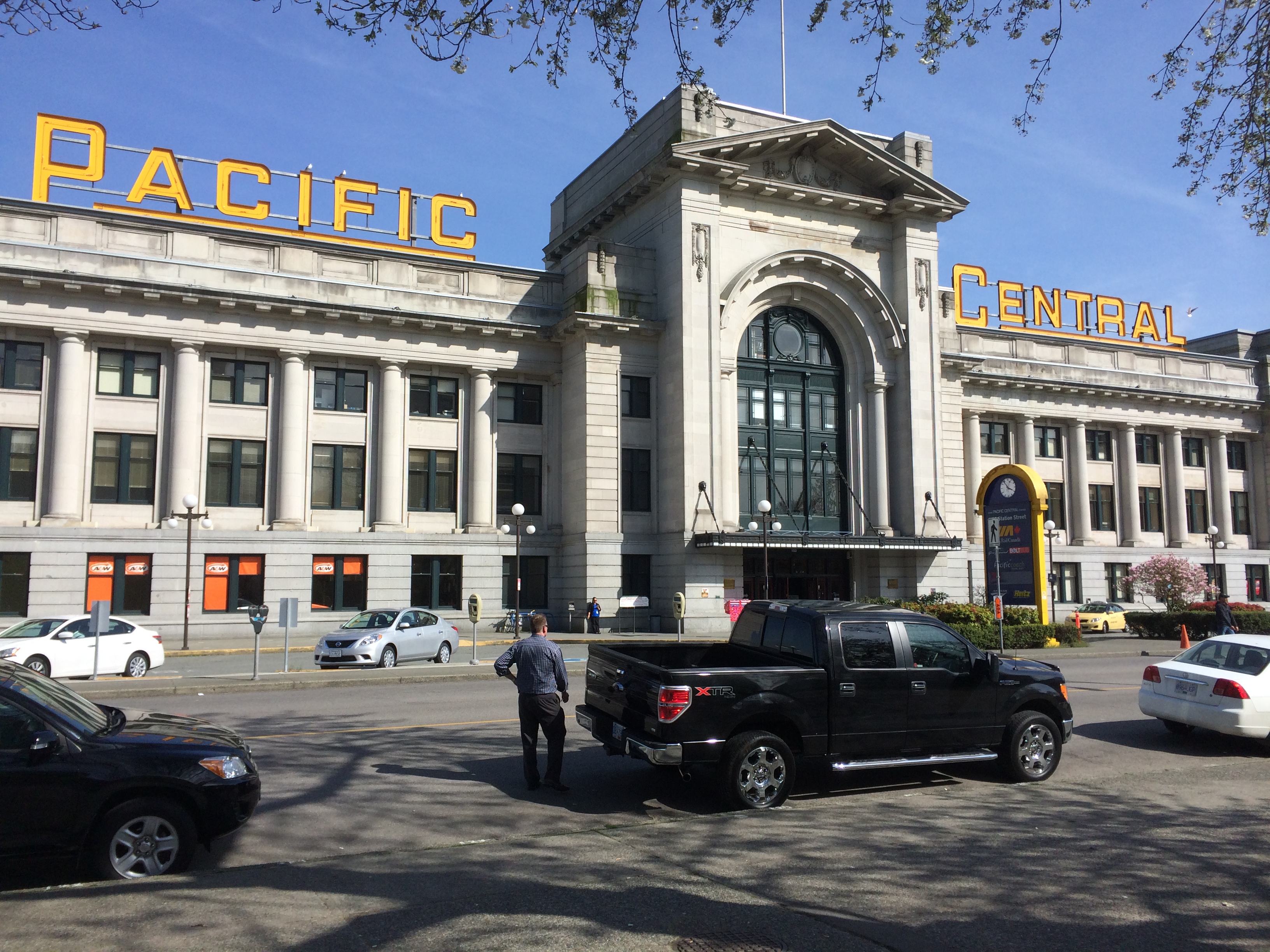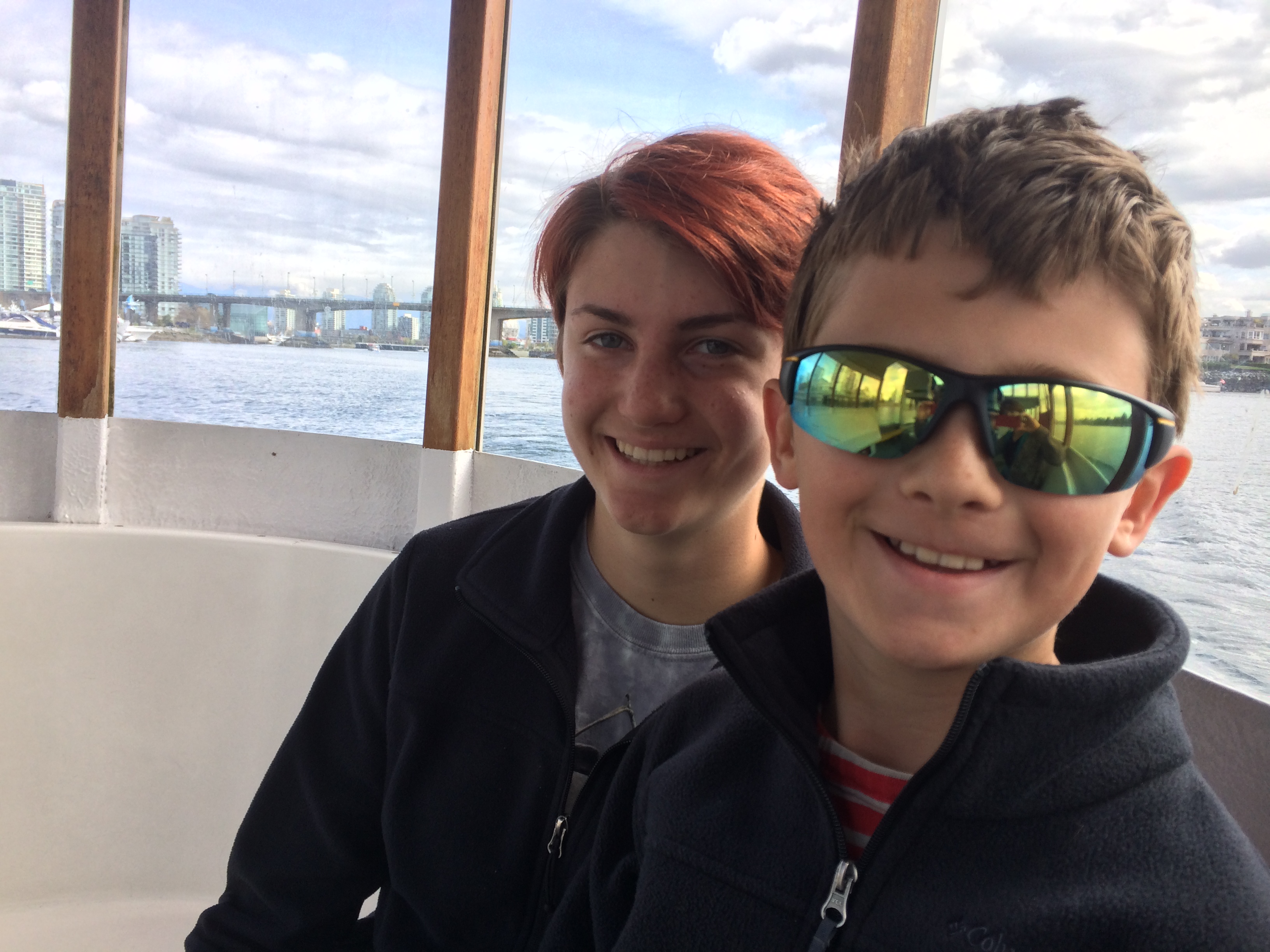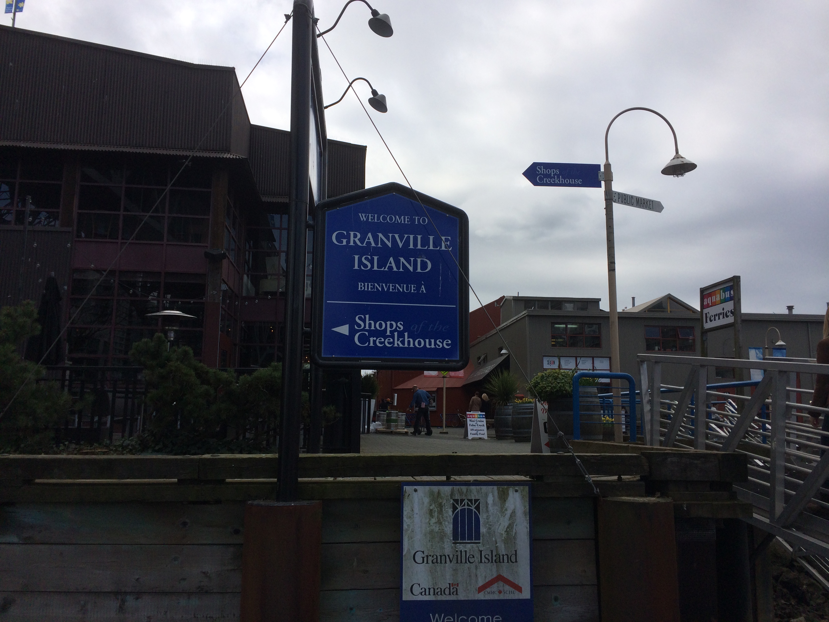 Today we went to Granville Island which is actually a small peninsula south of downtown with a big public market – produce stands, a butcher shop, and restaurants – as well as clothing, jewelry, and art stores. We took the train near there and then a tiny boat over.