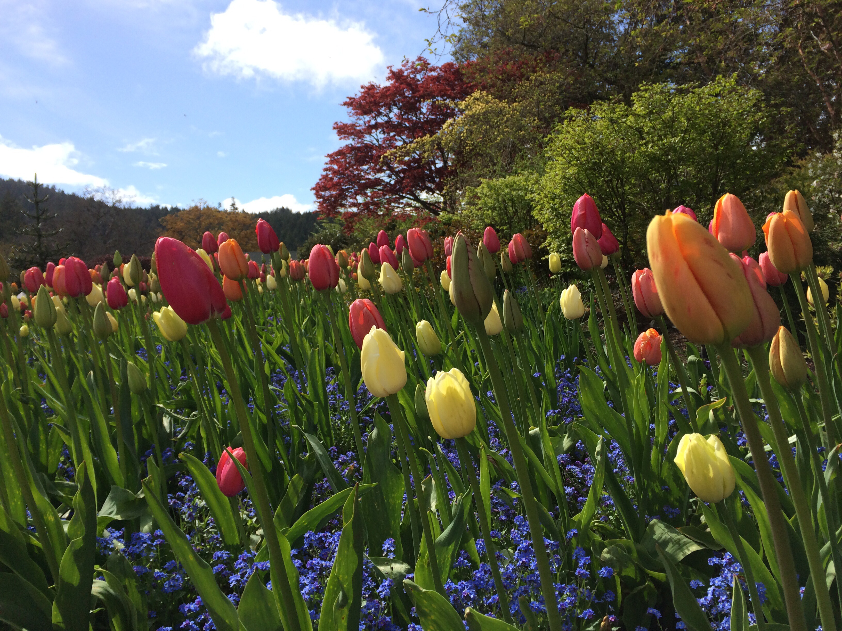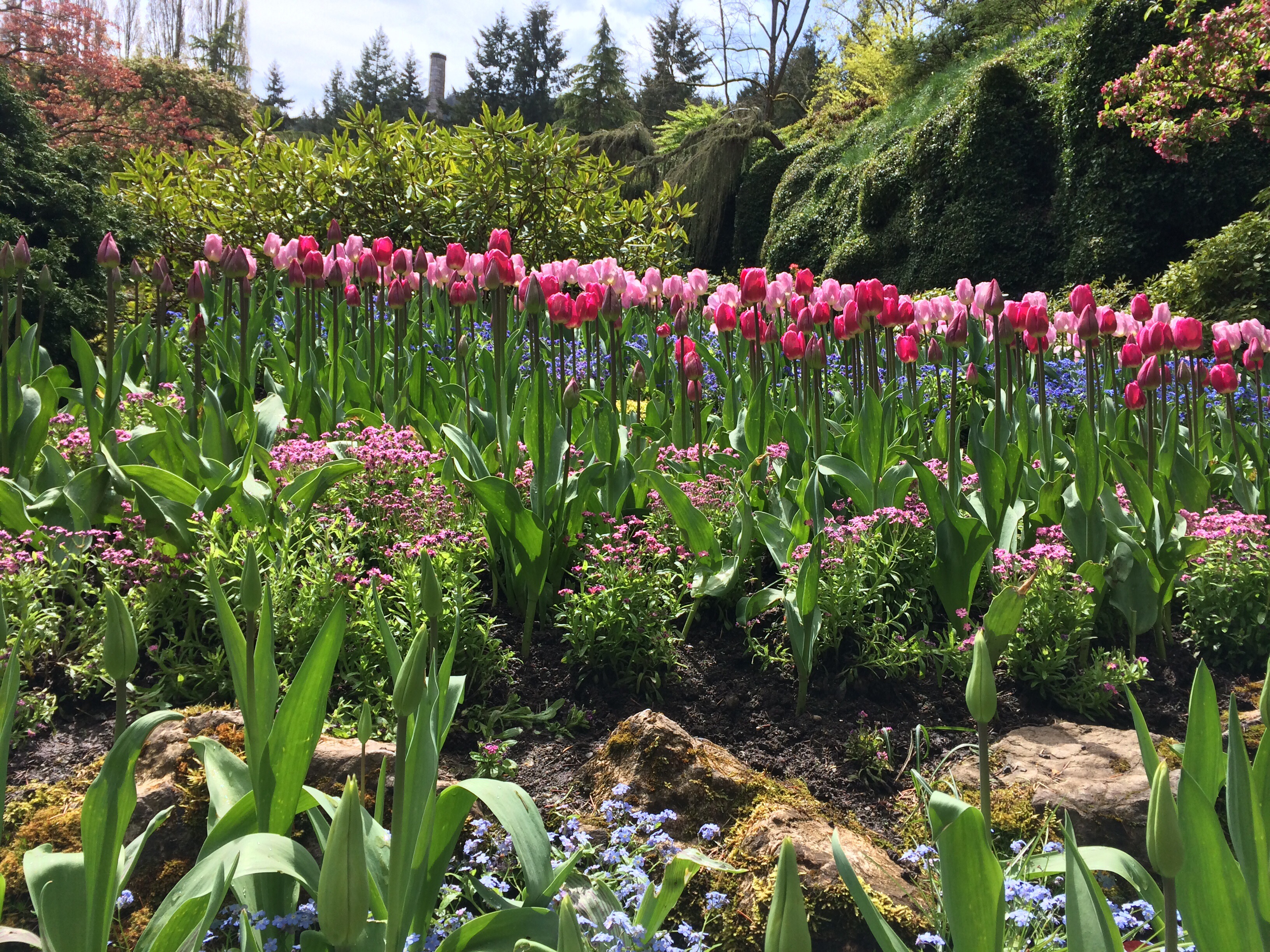 Upon deferrying, we took a one-hour, public bus ride to Butchart Gardens – a total of four hours from our apartment to the Gardens – where we ate lunch and enjoyed the beautiful scenery for hours.