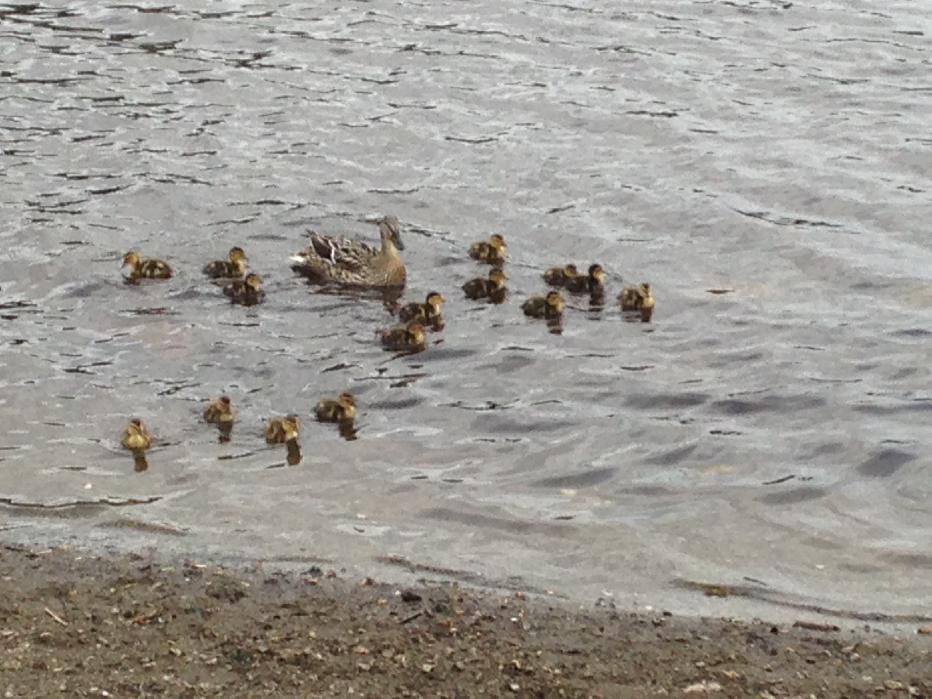 A few days ago we walked to Trout Lake Park where we saw a mama duck with 15 ducklings that looked like they had recently hatched.