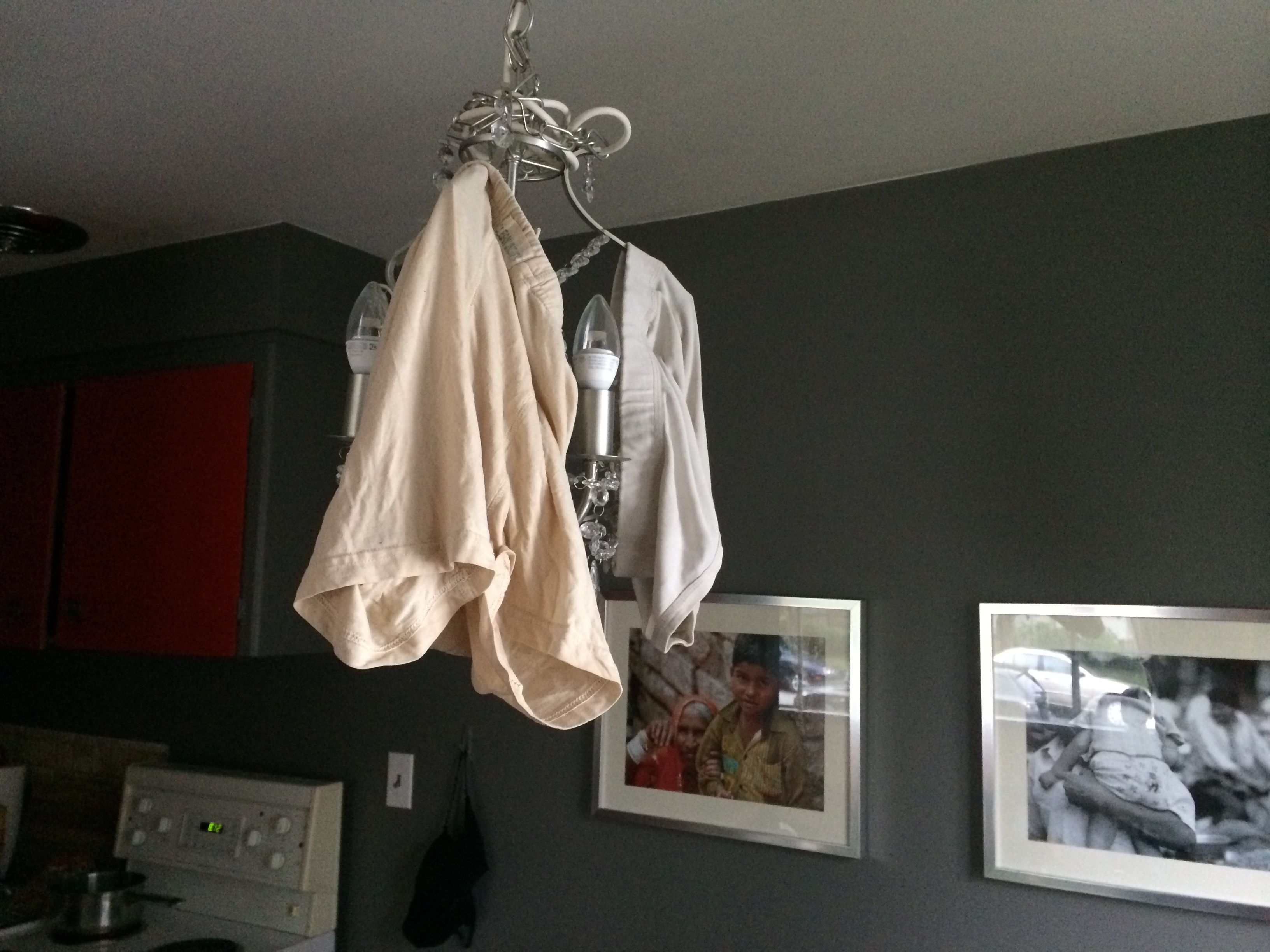 The basement dryer wasn’t working for several days so we had to get creative with drying methods in the apartment.