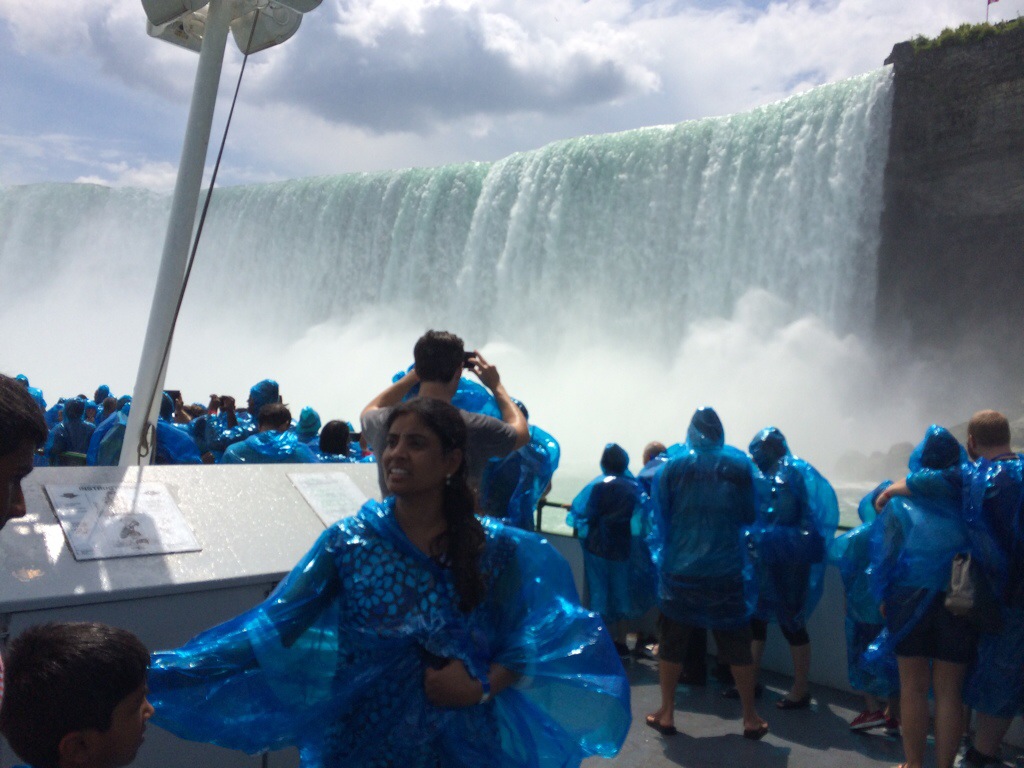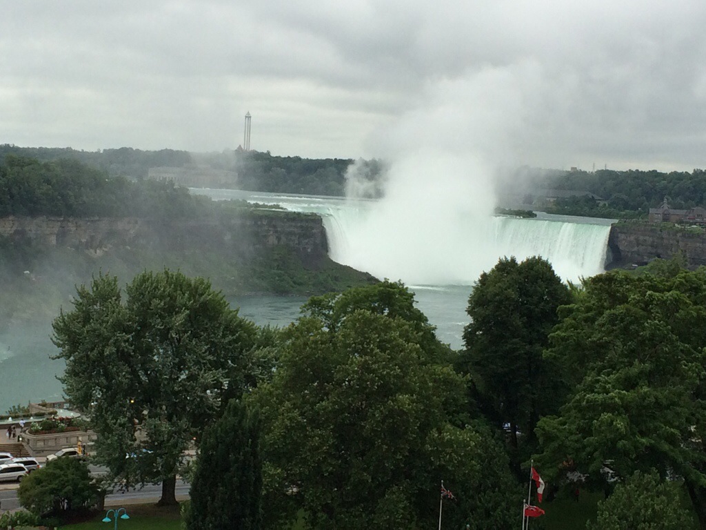 We had a lot of fun here. We arrived by train yesterday morning and spent the afternoon on the American side with our friends Jen and Dave. We rode Maid of the Mist and walked around Goat Island which separates the American Falls from Horseshoe Falls. After an Indian buffet dinner with our friends, we said our goodbyes and walked back over Rainbow Bridge to Canada where we spent the night in a hotel room with a great view of the falls. Despite a thunderstorm, the 10 pm fireworks went on as planned; and we had a perfect (and dry!) view from our room.