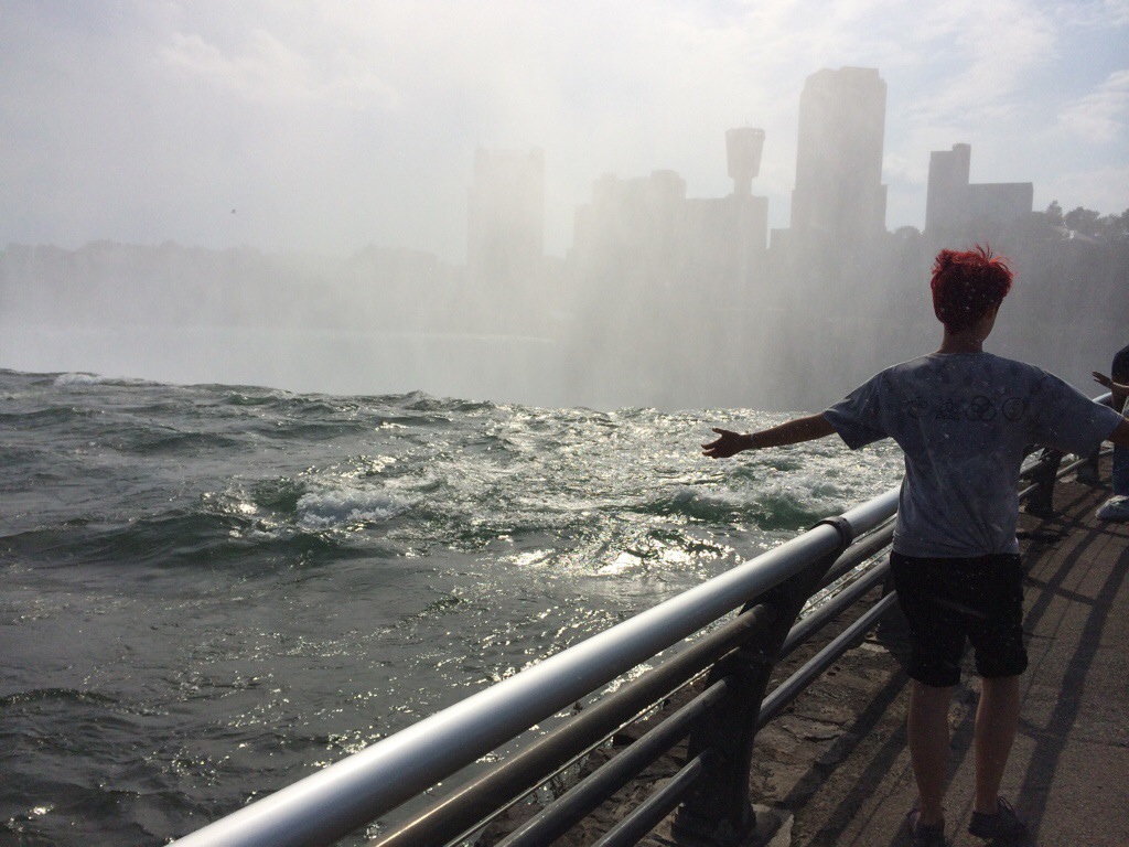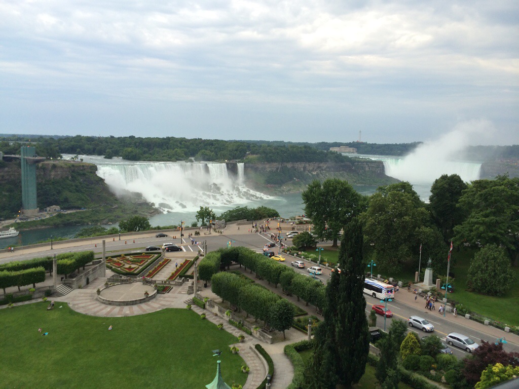 I’m typing this blog post on my phone; we’ll see how the photo layout turns out. I’m sitting on a park bench while Charlie plays at this small park in Niagara Falls, Ontario a couple blocks from the train station. Laurel didn’t care to join us and is sitting at the station with our bags. Our train to Toronto was supposed to leave at 5:45 pm. When we arrived at the station at 5:15 though, we learned that the train couldn’t make it because of some impediment on the tracks. We’re supposed to take a bus instead, but that has been delayed in Niagara Falls, New York and is expected to arrive here at 7 pm, getting to Toronto about 9 pm.