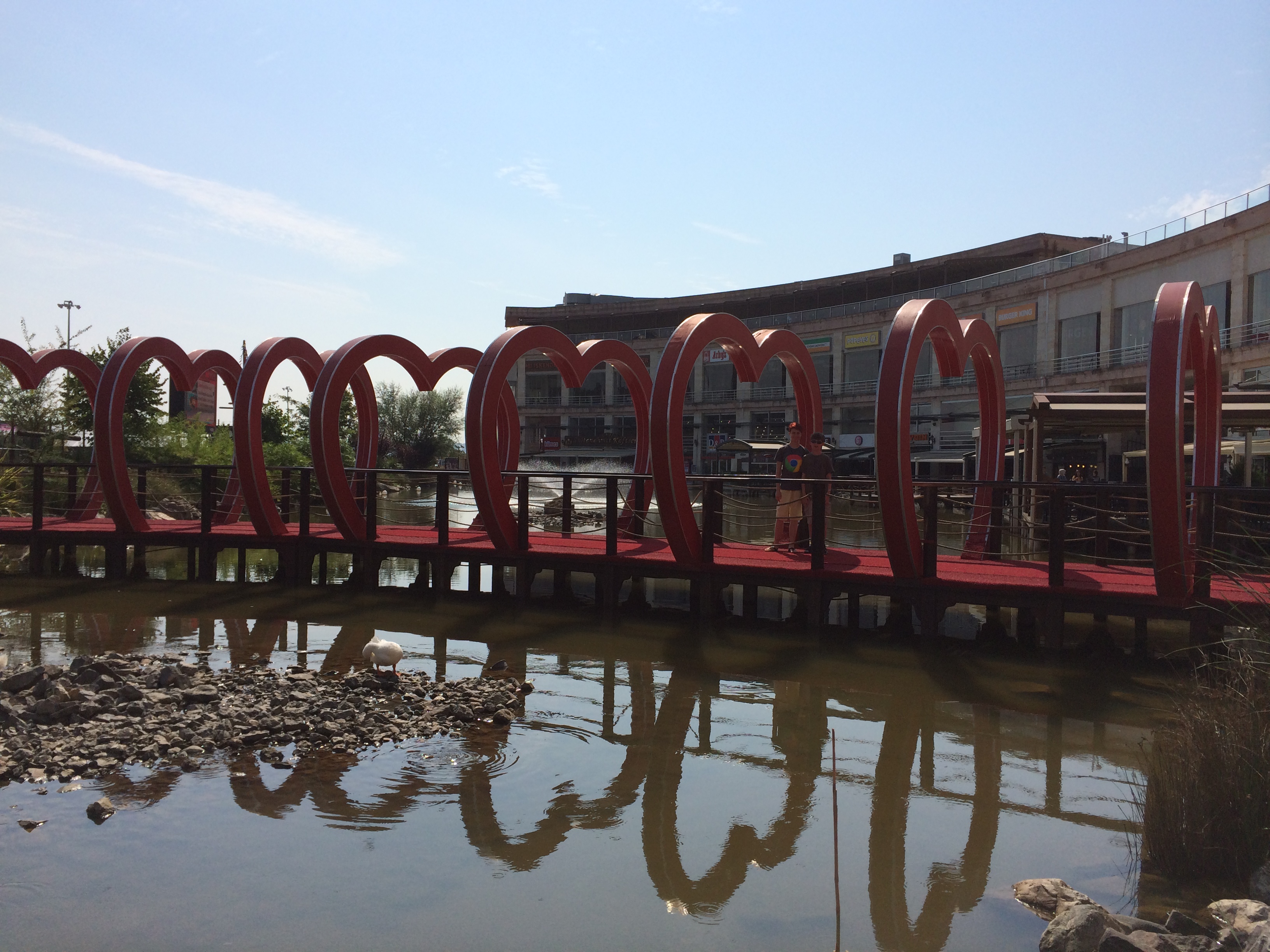 We ate dinner last night at our hotel’s buffet which, while tasty, was outrageously expensive. Today we realized there are loads of restaurants and shops behind the hotel, so we ate equally delicious food that cost about 70% less tonight. We sat on a patio next to a little man-made lake and an amusement park where Laurel had taken Charlie earlier in the day. Everything was perfect except that I was probably the only adult on the patio who wasn’t smoking. When I tried to find statistics about the smoking rate in Istanbul, I got very different percentages from two different articles. What everyone agreed on though, is that Turkey had one of the highest smoking rates in the world until a nationwide ban on smoking in enclosed public places was implemented in 2009. Since then, the number of smokers has dropped by more than a million. Eighty percent of the cost of a pack of cigarettes here is tax! As we walked around the open-air mall and then sat on a bench so I could look up smoking statistics, people on benches all around us were smoking, so we had to keep moving.