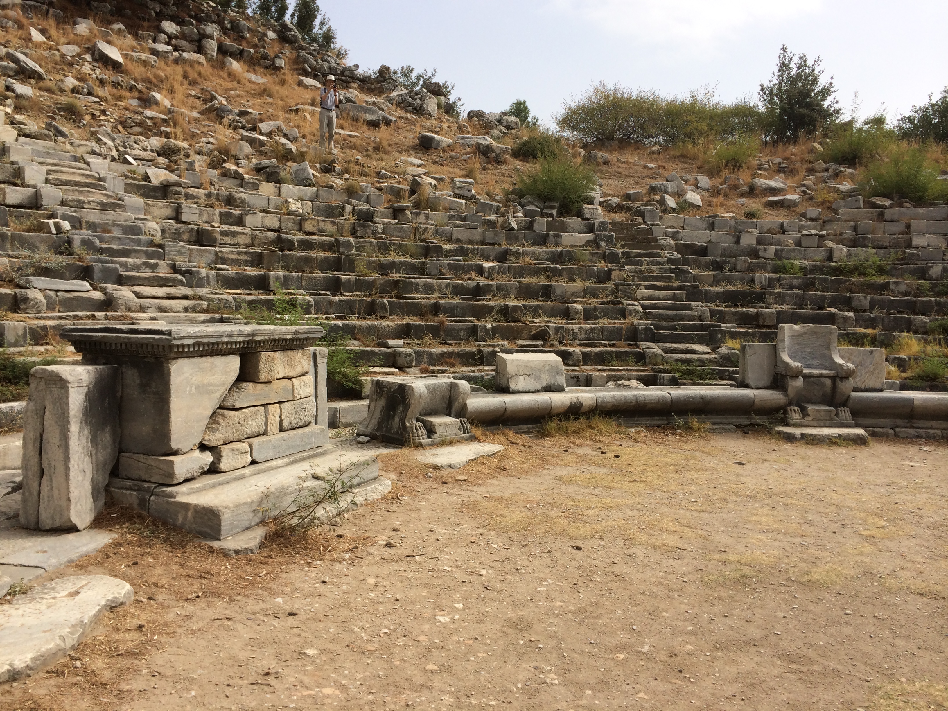 We visited three, Ancient Greek cities with Tuğrul again Tuesday. He and Mario, the driver, picked us up at 8:45 am and returned us to our apartment at 6:30 pm. The humidity was probably near 100%, but it was worth it. The sites are amazing, especially with Tuğrul’s explanations.
