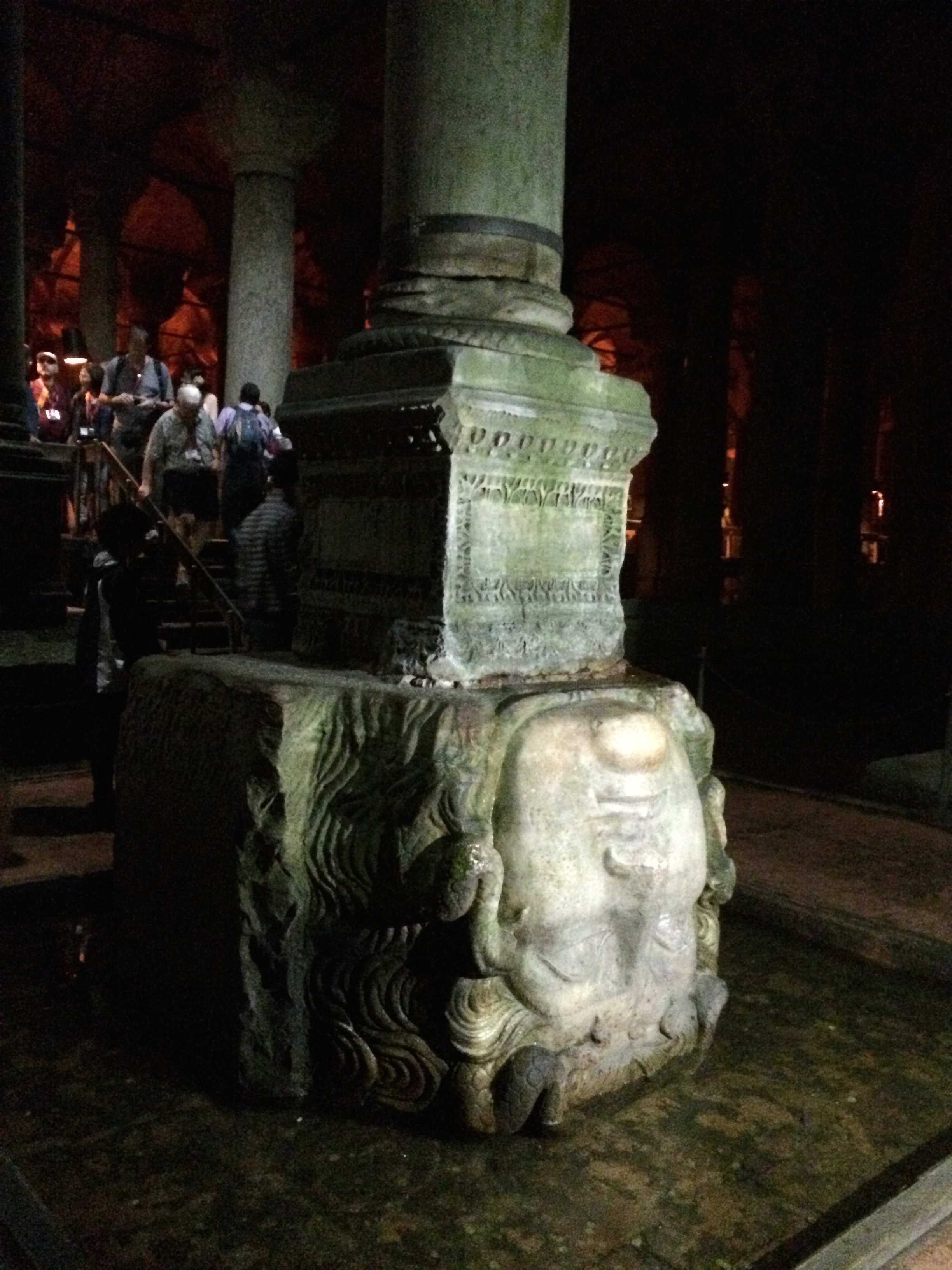 The cistern was my favorite, as strange as that may sound. I read Dan Brown’s Inferno a few months ago, part of which is set there. I asked Safiye why the Romans built such a beautiful place just to store water. Did it used to be something else? “No,” she shrugged. “They just enjoyed the beauty of it.” The Underground Cistern is a popular tourist attraction (as is everything we toured) but was still almost mystical in the experience. It is only dimly lit and there is haunting, lovely music playing softly. The pillars and the Medusa heads were taken from ruins of other buildings in various parts of the Roman Empire.