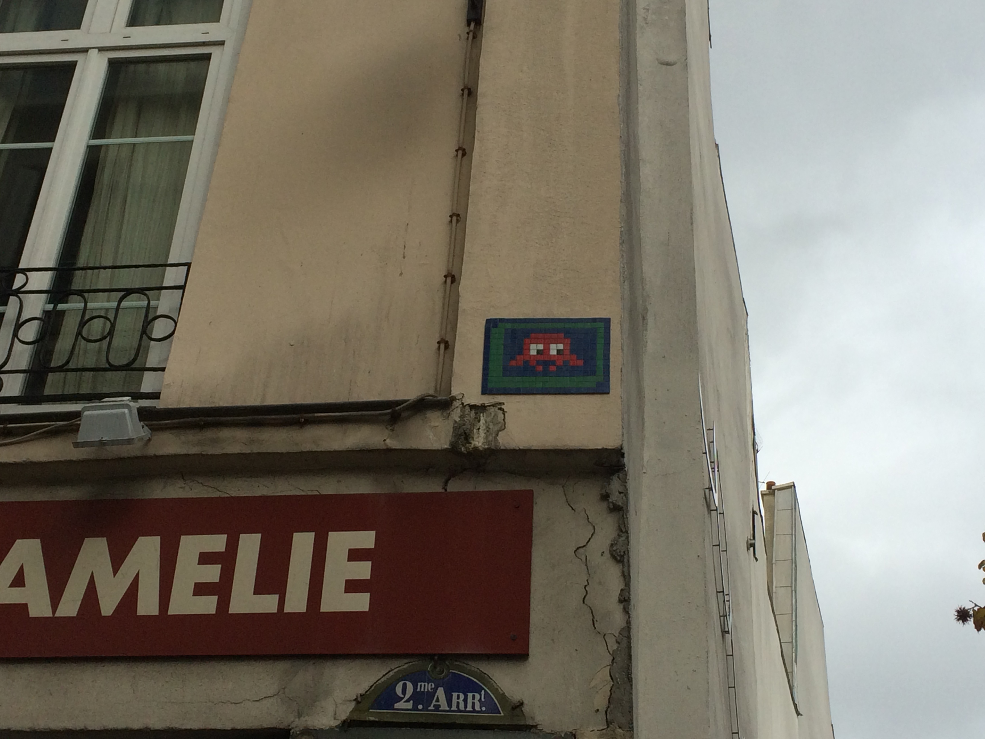 From our "Off the Beaten Path" Tour: Ludovic, our tour guide, pointed out these space-invader tile graffiti/artwork on a number of buildings.  We've since seen them on buildings in other arrondisements.  He said they started showing up on Parisian buildings in the early 1990's.
