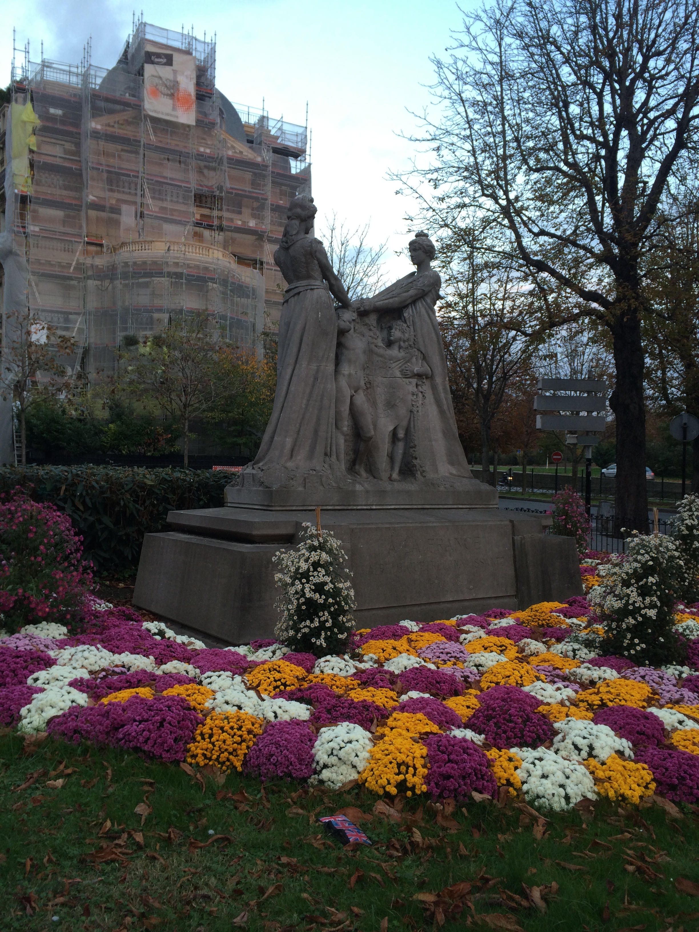 St. Michael/Michel the Archangel slaying the devil - There is a plaque next to it dedicated to the French soldiers who died defending Paris in 1944.