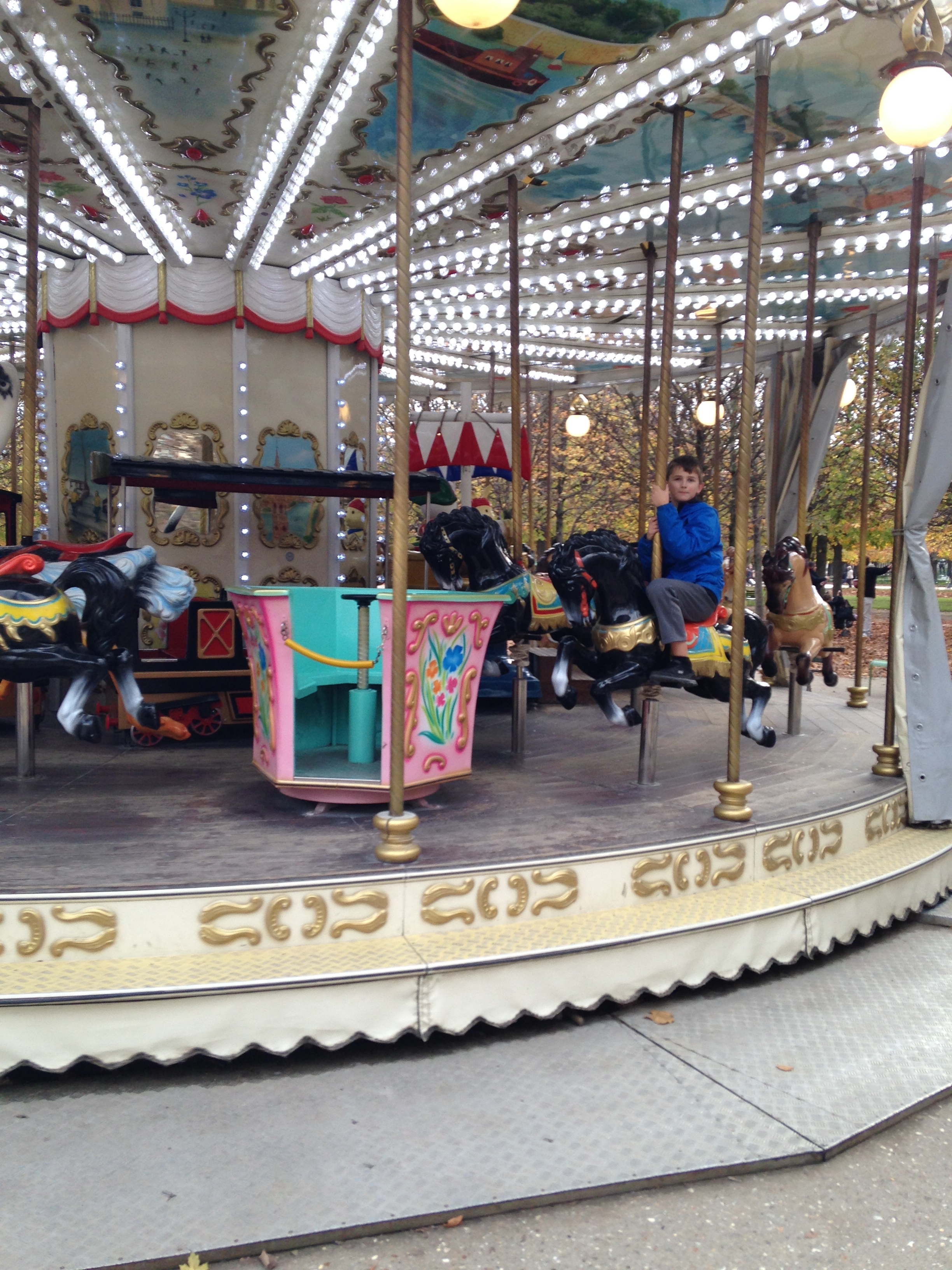 While I stayed at the apartment a few days ago to figure out what trains to take for our three-week Central and Eastern European train trip, the kids walked to Place de la Concorde and Jardin des Tuileries where Charlie rode the carousel.