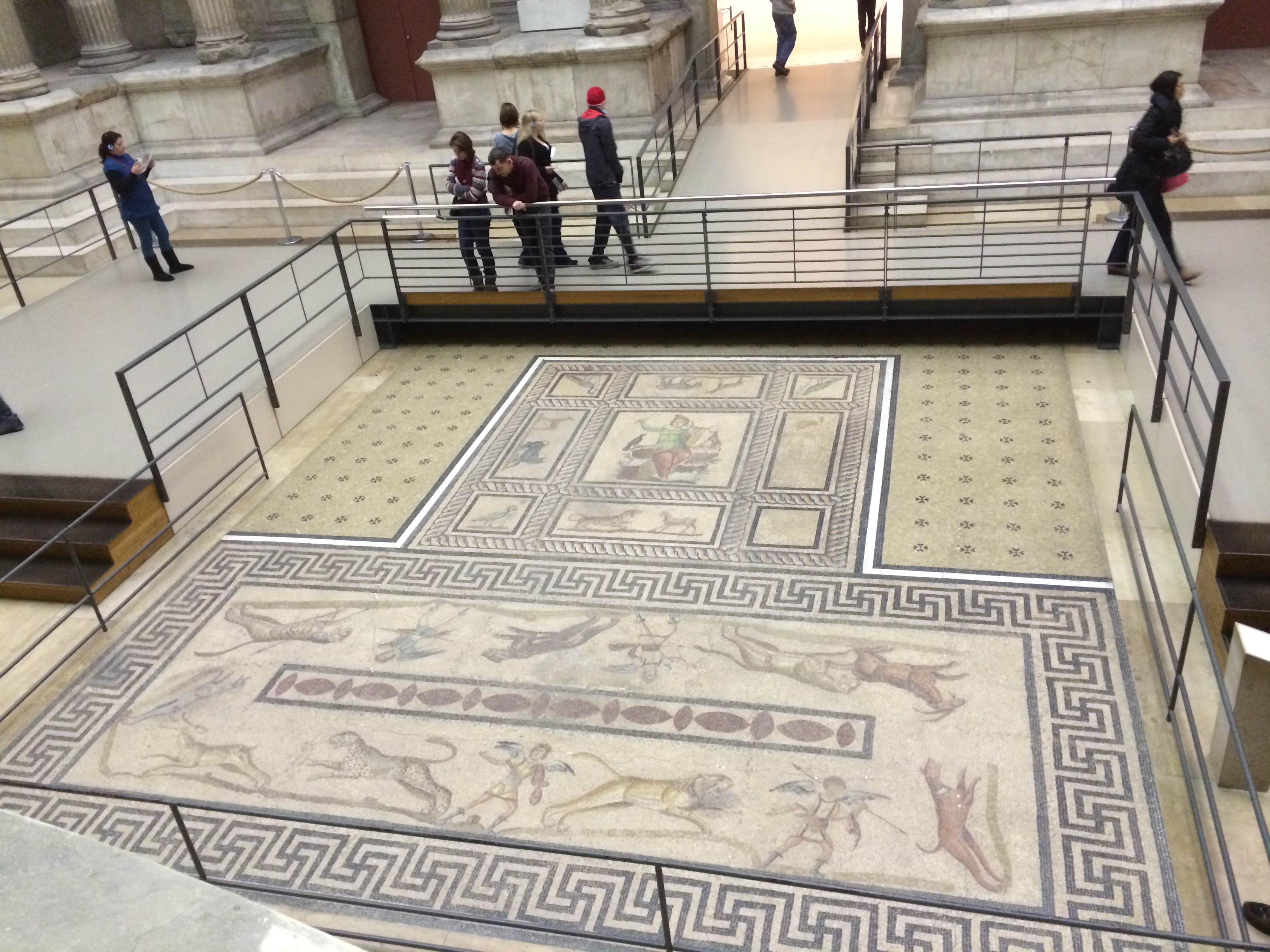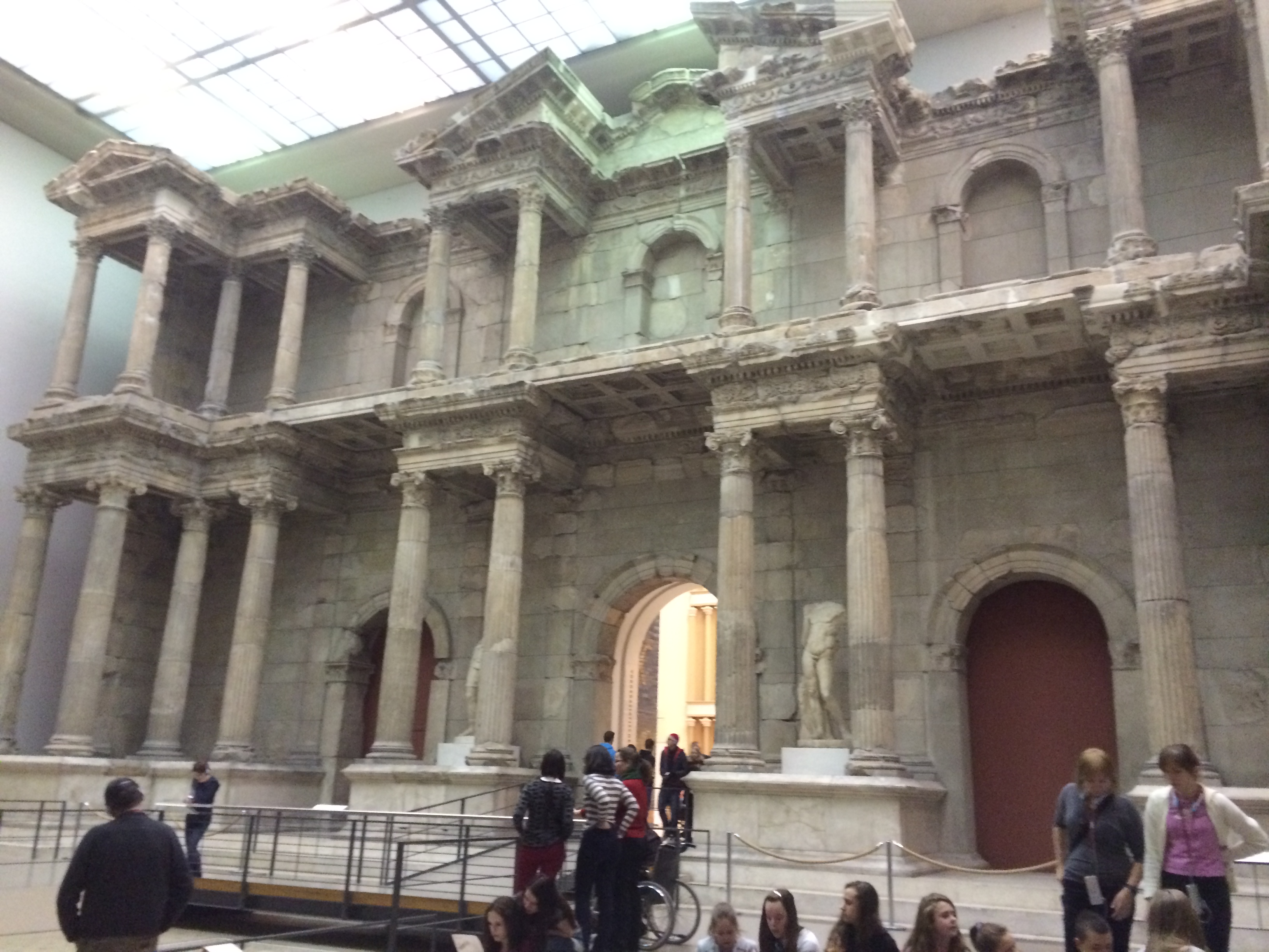On Friday we went to the Pergamon Museum, so named because of the Pergamon Altar brought to Berlin in the early 20th Century from the ruins of an Ancient Greek city in present-day Turkey. Tugrul told us about the museum, and we had been looking forward to seeing it. Unfortunately the altar exhibit closed a couple months ago for renovations and will remain closed for five years – probably longer than it took to construct the actual altar. We were able to see lots of really cool stuff though.