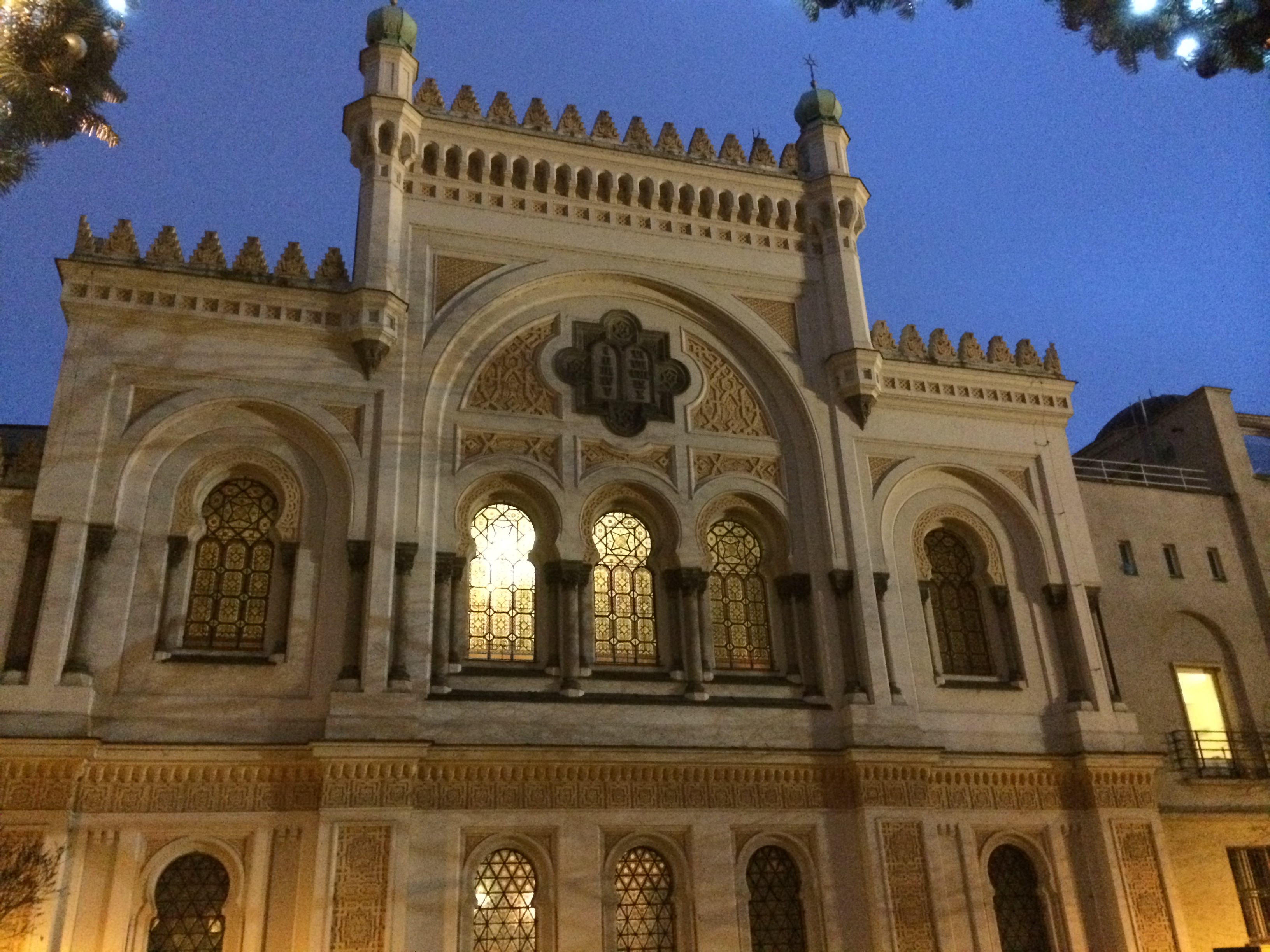 Below: Spanish Synagogue where Laurel saw a classical music concert; there are many in Prague during Advent. Charlie and I didn’t go because he didn’t want to, and I had a cold and kept sneezing. Laurel said, “No offense, but I’m glad you didn’t go. It’s actually pretty small inside, and your sneezing would have been quite distracting. One person clapped inappropriately at a pause in the music and got dirty looks from two of the five musicians.” We all saw the outside on Friday though when I took this picture.