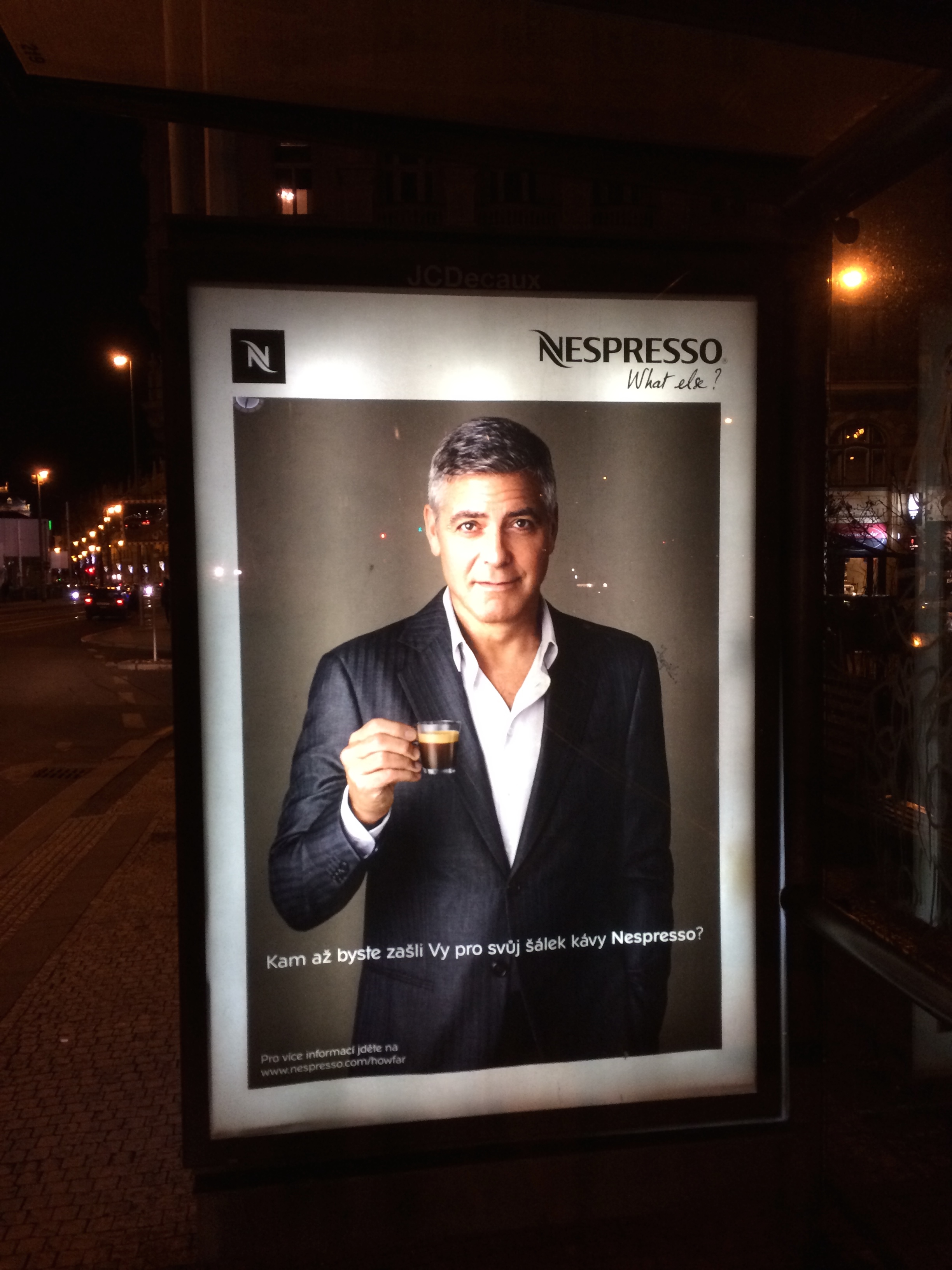 I was surprised to see this on a bus stop shelter. I don’t watch TV (other than some shows that I can watch online), so maybe he’s been advertising on TV for a while and I didn’t know it. Laurel said, “Does George Clooney need the money?” Nestle is known for its human rights abuses. What was Clooney thinking? All right, so I just looked up this situation, too, and found on The Guardian’s website that Clooney is using most of the money from this ad campaign to pay for a satellite (?!) over the border between North and South Sudan in order for him to spy on Omar-al Bashir, the Sudanese dictator charged with war crimes at The Hague. Clooney wants Nestle to source some of its coffee from Sudan so that the Sudanese can have a more reliable revenue stream than oil whose revenue currently does not get distributed to the people from whose land it is taken. Golly, that’s a complicated ad I looked up.