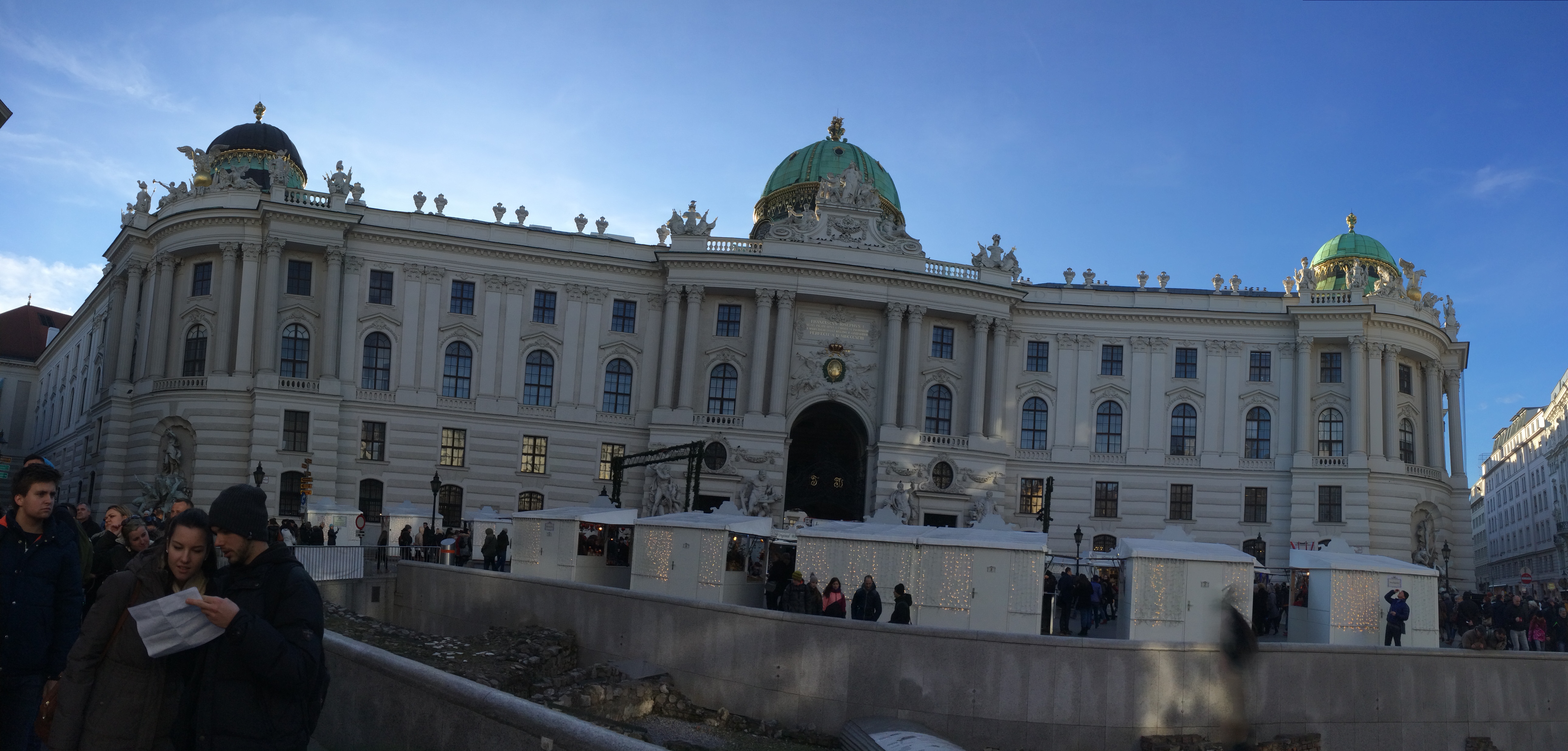 On December 20, we walked a mile to Old Town and saw the enormous Imperial palace where the Spanish Riding School and Lippizaner Stallions are. A few weeks before, I had read a bit about the show; but most people said it was not what they expected – that the horses were essentially just being exercised. So no horse show for us, but we did get stopped by a young man in 18th-century garb who asked if we wanted to attend a concert of classical music, including Mozart pieces, that would also include ballet and ballroom dancing and opera singing. The concert is held in the very room where six-year-old Mozart, his sister, and their father had performed for the royal family. We bought the tickets and went that night. It was cheesy, as the online reviewers had said, but we were in the land of Mozart; and these were the tickets that were available. We walked around the Christmas Market for a few minutes that afternoon. For some reason before we embarked on our European adventure, I imagined Europe as begin immune to the proliferation of ubiquitous, Chinese-made goods we have in the US. Europeans are smarter than Americans, aren’t they? They appreciate quality and still have craftsmen and artisans, right? To some extent, but it’s not on display at the Christmas markets. Throngs of people push and shove each other. When you finally get up to a booth, you realize there’s nothing there worth buying anyway. I guess that was good news for my wallet, but disappointing nonetheless. We ate lunch in a cafe that’s part of the castle complex and then spent a couple hours touring the Sisi Museum – the portion of the palace where the public can see the vast collection of silver, porcelain, and fancy China dishes that the royal family used as well as some of the rooms used by Empress Elisabeth “Sisi” who was stabbed to death while on a trip to Geneva in 1898. The museum talked about her mystique and showed clips of movies that had been made about her. I had never heard of her and was reminded again of the poor quality of my education. Her husband Franz Joseph was one of the last of the Habsburgs to rule Austria where a Habsburg had been on the throne since 1276 (and his butt was sore).