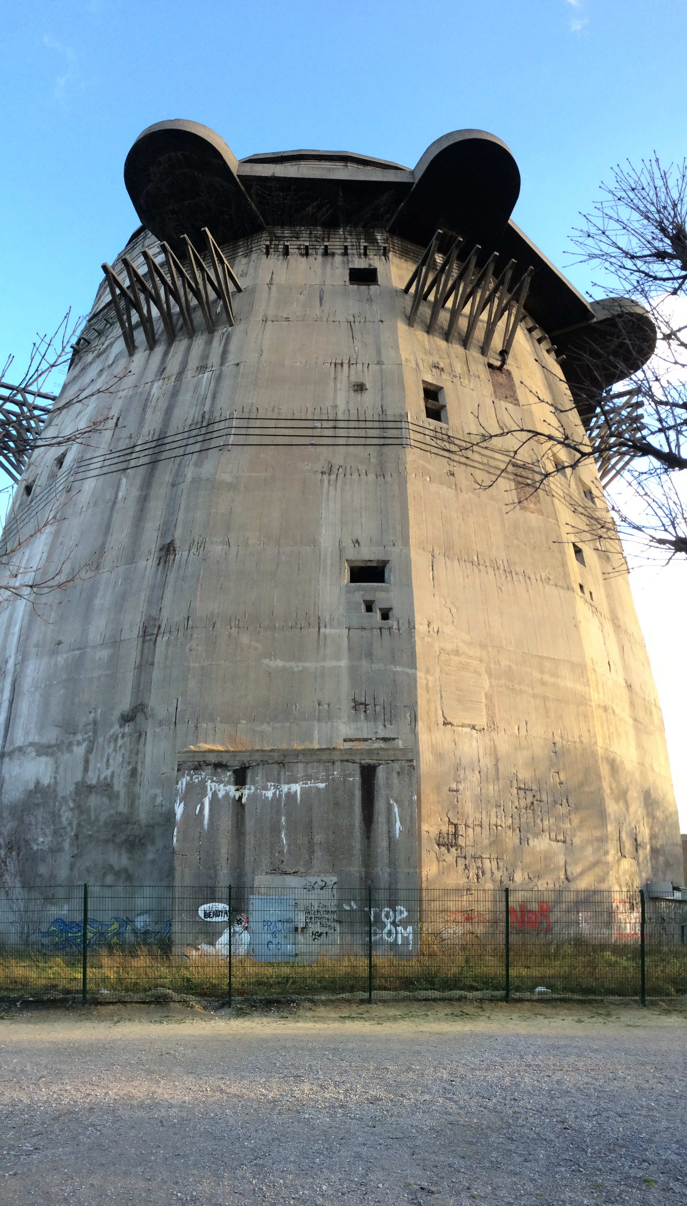 Flakturm VII G is one of several flak towers constructed by Hitler (literally — he personally took part in designing them) in 1942 to act as combined bomb shelters and anti-aircraft battlements against the Allied forces — a job they carried out so well that when the Soviets later tried to demolish them in peacetime, their explosives only hurt the surrounding buildings. That’s probably because the flak tower’s walls are 15-feet-thick reinforced concrete. It was built to house up to 2,000 people, and its original firepower was, in scientific terms, totally ball-slapping insane. Also, the tower was and, with slight renovations, could easily still be totally autonomous, with its own electricity, air and water supply systems.