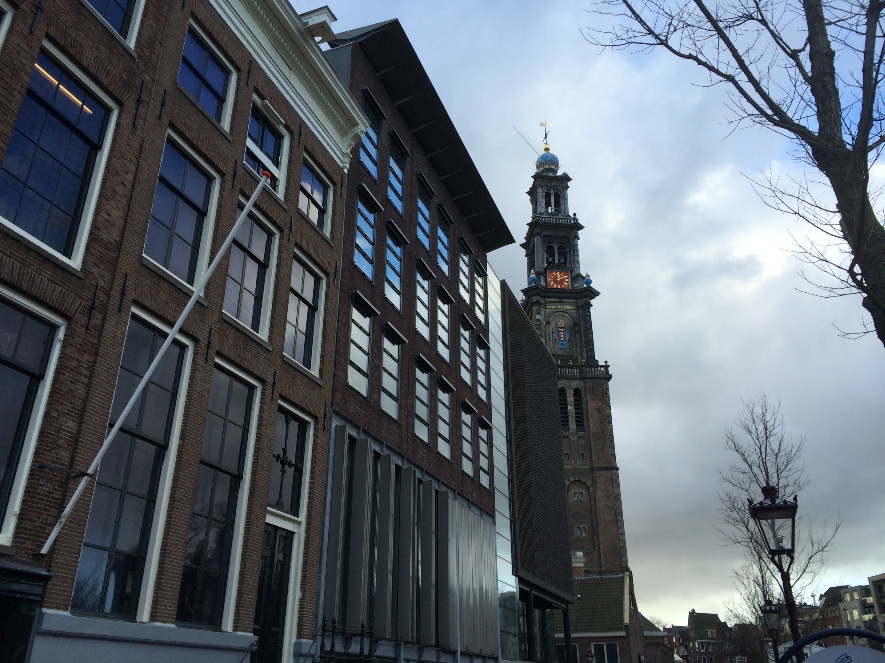 Sunday we took the tram/light rail into town (Our hotel is new and several miles from the city center.) and walked around, touring the Tulip Museum that Laurel saw during our walk as well as the Cheese Museum that Laurel also saw. Then we spent a few hours at the large, modern Centraal Library where we ate dinner at their 7th-floor, organic cafeteria. After dinner Laurel and I went to the Anne Frank house which had extended hours. When we were still in Paris, I was able to buy the last two timed-entry tickets over the Internet. I’m glad I did because the line wound around two sides of a block earlier in the day. Charlie went to a bistro and ate dessert while he waited about an hour for us.