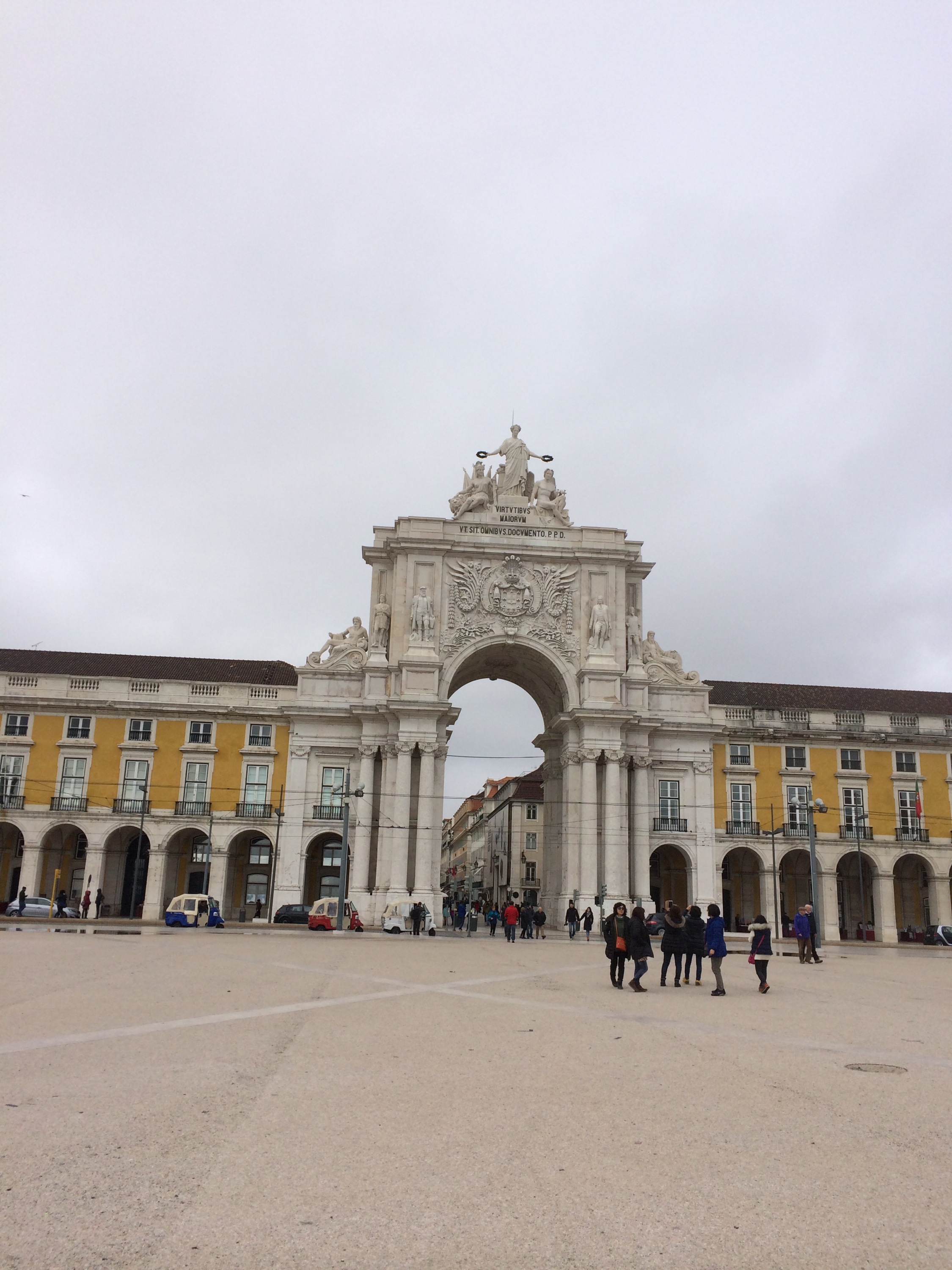 Below are photos of some of the beautiful, tiled homes we saw on our walk as well as a bridge that looks like the Golden Gate Bridge which was designed by the American company that built the Oakland Bay Bridge. Lisbon doesn’t face due east across the Atlantic; it’s a sheltered harbor on the Tejo River that starts in Spain and flows 1008 km before emptying into the Atlantic near here. The triumphal arch in the photos was begun in 1755 just after the earthquake but wasn’t completed until the late 1800’s.