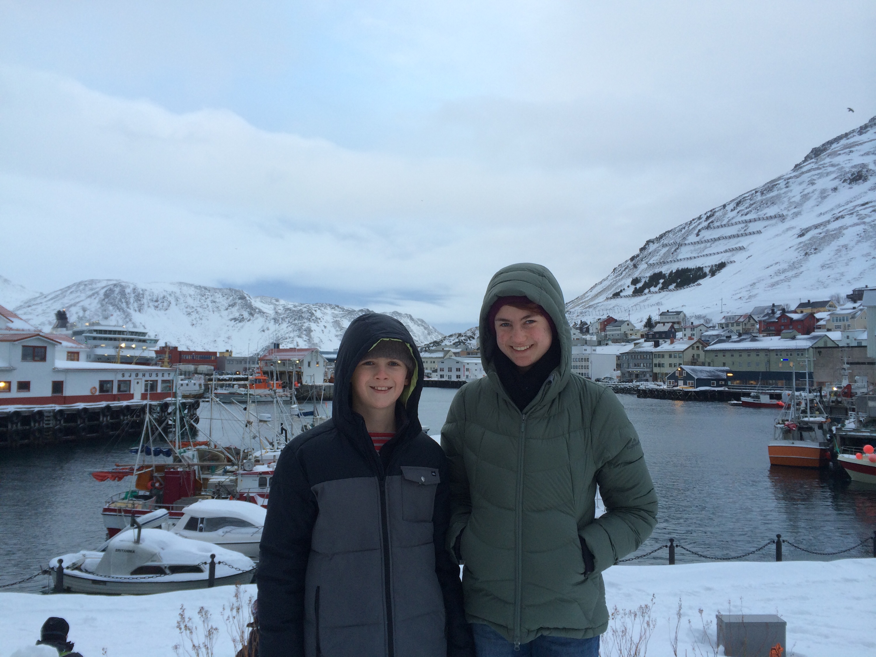 Today the ship stopped in Honningsvag where the kids and I walked around town with a fellow American passenger, Maureen from Long Island. Tomorrow we’ll go to a snow hotel near the Russian border, and Saturday we’ll be back in Tromso to spend two nights in a hotel.